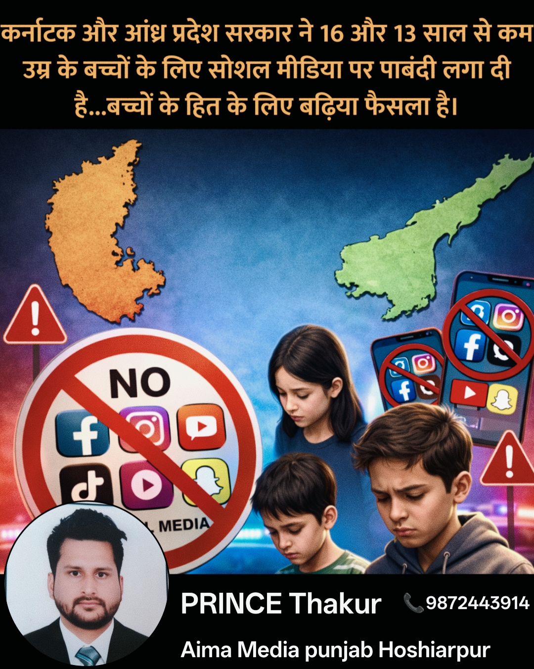 कर्नाटक ओर आंध्र प्रदेश सरकार ने कम उम्र के बच्चों के लिए सोशल मीडिया किया बैन