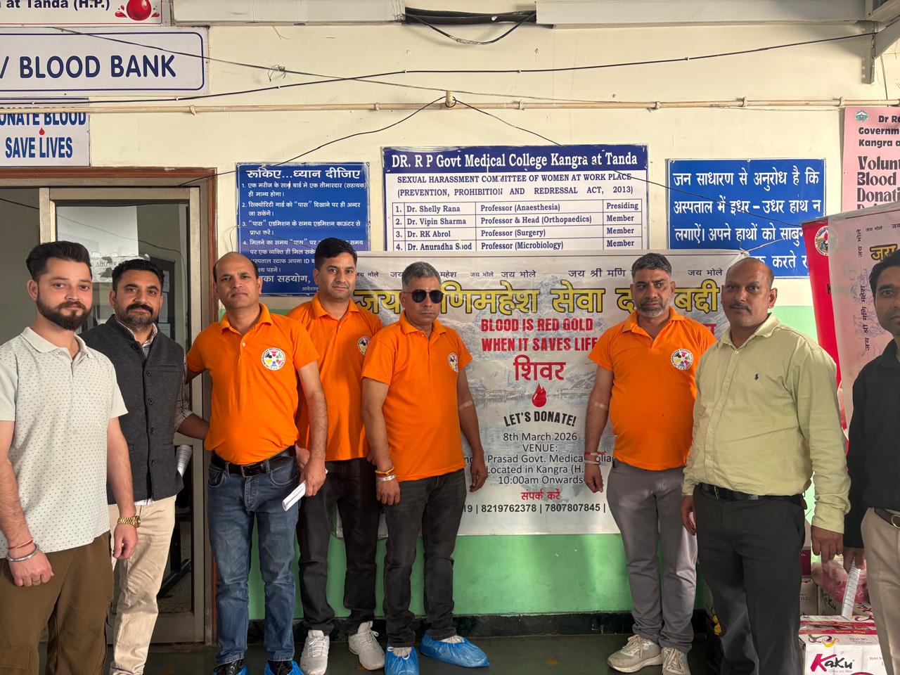कांगड़ा, 8 मार्च 2026 — मानवता की सेवा के उद्देश्य से जय मणीमहेश सेवा दल बद्दी द्वारा आज Dr. Rajendra Prasad Government Medical College में रक्तदान शिविर का आयोजन किया गया। इस शिविर में युवाओं और समाजसेवियों ने बढ़-चढ़कर हिस्सा लिया और कुल 100 यूनिट रक्तदान कर मानवता की मिसाल पेश की।