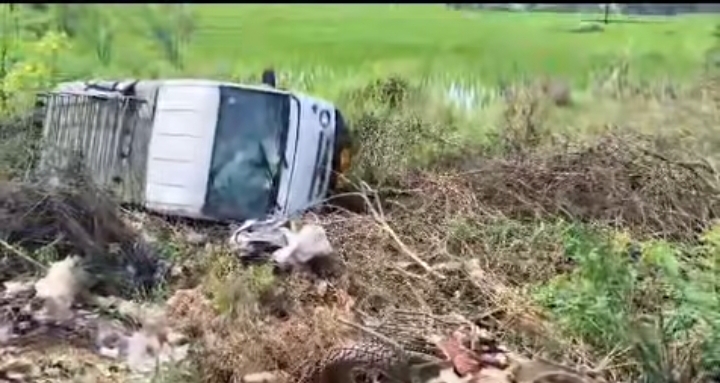 నూజివీడు బైపాస్‌లోని పోతురెడ్డిపల్లి సర్కిల్ వద్ద టాటా ఏసీ వాహనం అదుపుతప్పి రెండు ద్విచక్ర వాహనాలను ఢీకొట్టి బోల్తా పడింది. మధిర నుంచి వివాహ సంబంధం విషయమై జంగారెడ్డిగూడెం వెళుతున్న టాటా ఏసీ వాహనం, ఎదురుగా వస్తున్న లారీని తప్పించబోయే సమయంలో అదుపుతప్పి ఎదురుగా వస్తున్న రెండు ద్విచక్ర వాహనాలను ఢీకొట్టినట్లు స్థానికులు తెలిపారు.