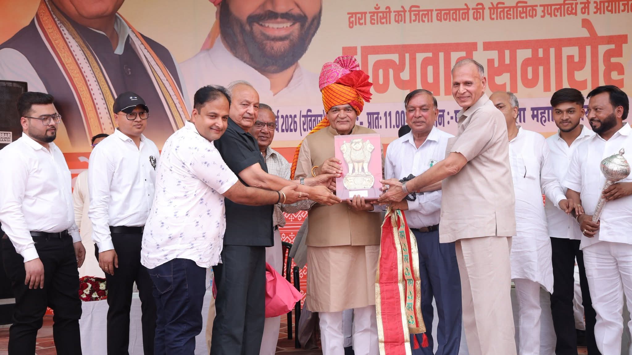 हाँसी को 193 साल बाद उसका खोया हुआ जिला होने का गौरव दिलाने के उपलक्ष्य में रविवार को एस.डी. महिला महाविद्यालय के प्रांगण में एक ऐतिहासिक 'धन्यवाद समारोह' का आयोजन किया गया। समारोह में उमड़े हजारों नागरिकों के हुजूम ने विधायक विनोद भयाना का जोरदार स्वागत किया और उन्हें 'हाँसी रत्न' की उपाधि से नवाजा।