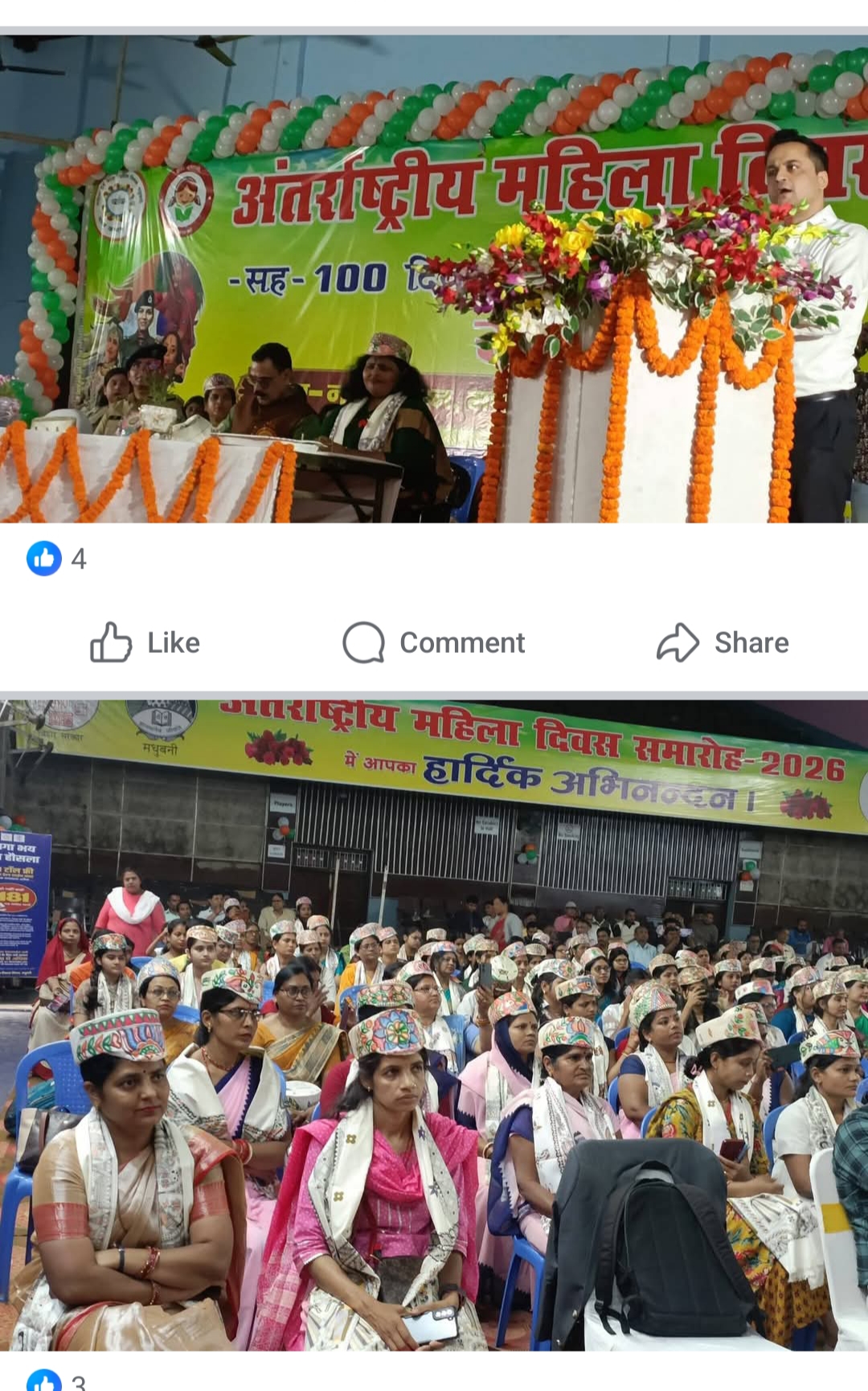आज मधुबनी जिला मुख्यालय के नगर भवन में अन्तर्राष्ट्रीय महिला दिवस समारोह का आयोजन किया गया।