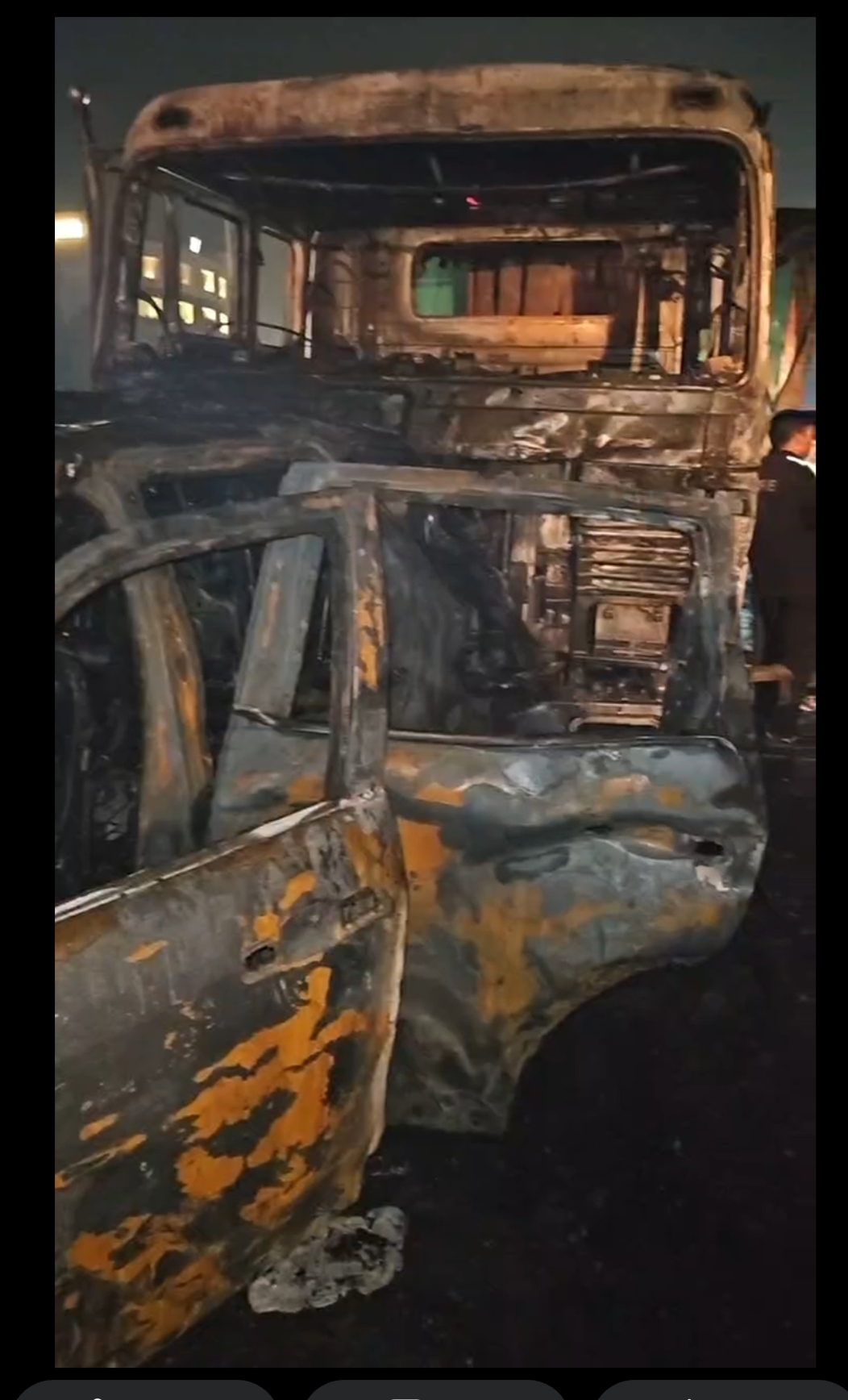 सूचना मिलते ही पुलिस और फायर ब्रिगेड की टीमें मौके पर पहुंचीं और काफी मशक्कत के बाद वाहनों में लगी आग पर काबू पाया गया। घायलों को इलाज के लिए अस्पताल भेजा गया है।