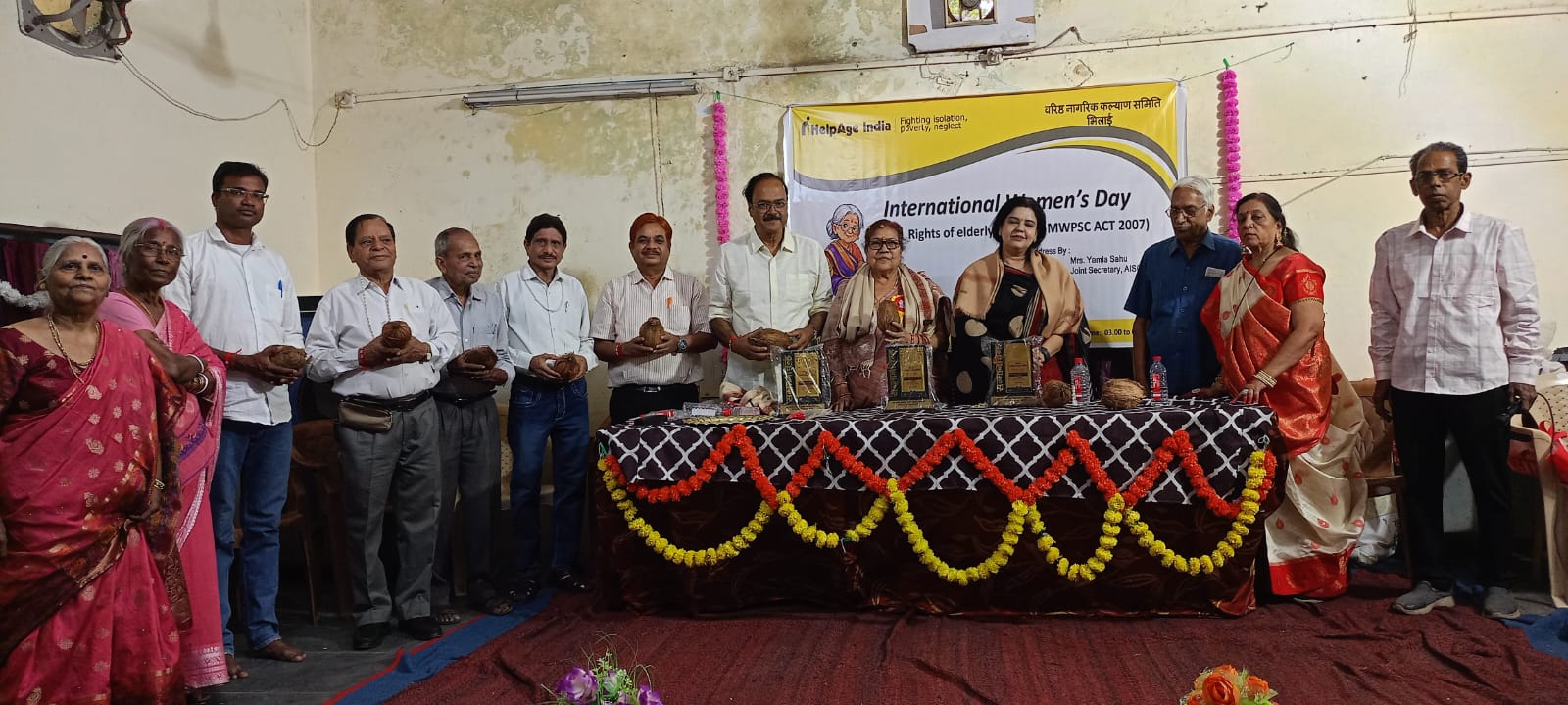कार्यक्रम का शुभारंभ सामुहिक दीप प्रज्वलन से हुआ। महिलाओं ने स्वागत गीत प्रस्तुत किया एवं डॉ कांति लाल विश्वकर्मा ने स्वागत भाषण दिया।महिलाओं ने सभी आगंतुकों का स्वागत तिलक लगाकर किया। समारोह का आयोजन हेल्पेज इंडिया एवं वरिष्ठ नागरिक कल्याण समिति हाउसिंग बोर्ड के संयुक्त तत्वावधान में भिलाई वरिष्ठ नागरिक महासंघ एवं लोकार्पण समिति के विशेष सहयोग से संपन्न हुआ।