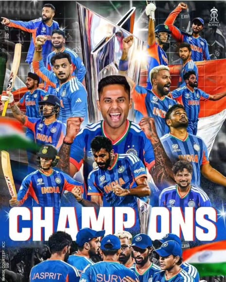 आज का दिन हर भारतीय के लिए गर्व और खुशी का दिन है। हमारी भारतीय क्रिकेट टीम ने जिस जुनून, मेहनत और टीमवर्क के साथ T20 वर्ल्ड कप में जीत हासिल की है, वह सच में पूरे देश के लिए प्रेरणा है।