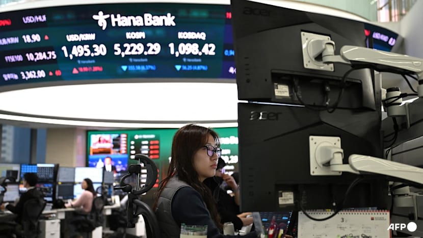 Currency dealers monitor exchange rates as an electronic screen shows South Korea's benchmark Kospi stock index in a foreign exchange dealing room at the Hana Bank headquarters in Seoul on Mar 9, 2026. (Photo: AFP/Jung Yeon-je)