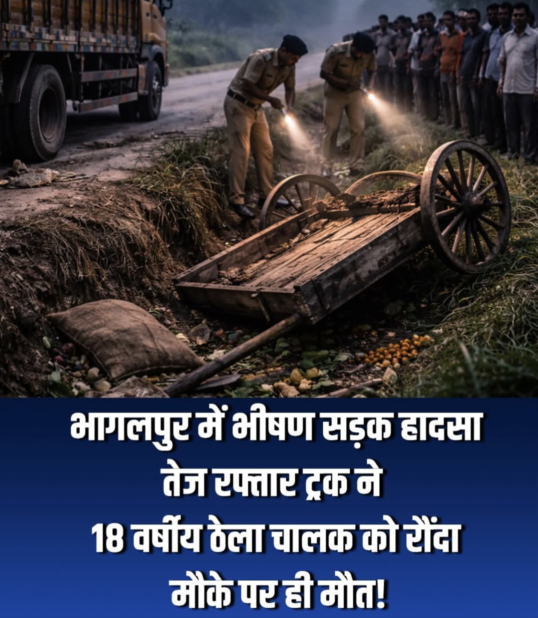 रिपोर्टर आशीष कुमार, भागलपुर में भीषण सड़क हादसा, तेज रफ्तार ट्रक ने 18 वर्षीय ठेला चालक को रौंदा मौके पर ही मौत हो गई।,