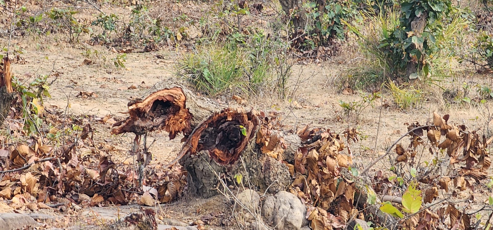 प्रकृति का चीरहरण: मशीन लगाकर काटे और गिराए गए 'साल' के वृक्ष, बेशकीमती लकड़ियों की 'रहस्यमयी' गुमशुदगी
