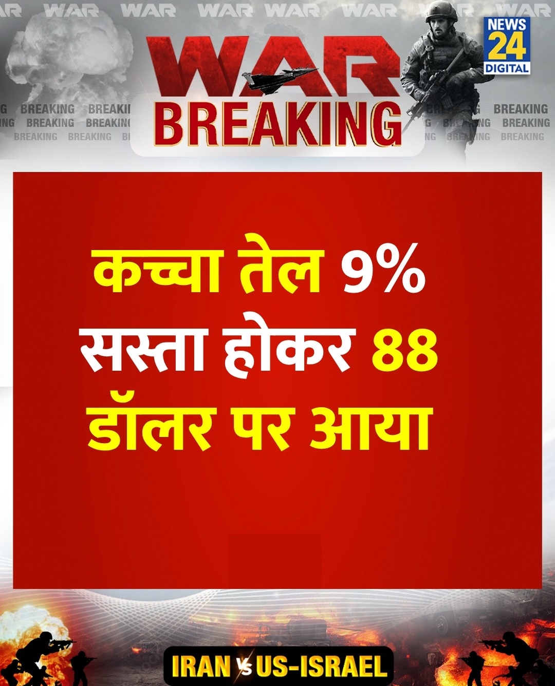 ତେଲ 9% ଶସ୍ତା ହୋଇ 88 ଡଲାର ରେ ପହଞ୍ଚିଲା।