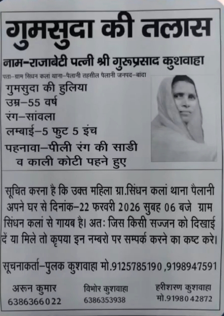 गुमशुदा का नाम:- राजाबेटी कुशवाहा/ पति/गुरुप्रसाद कुशवाहा