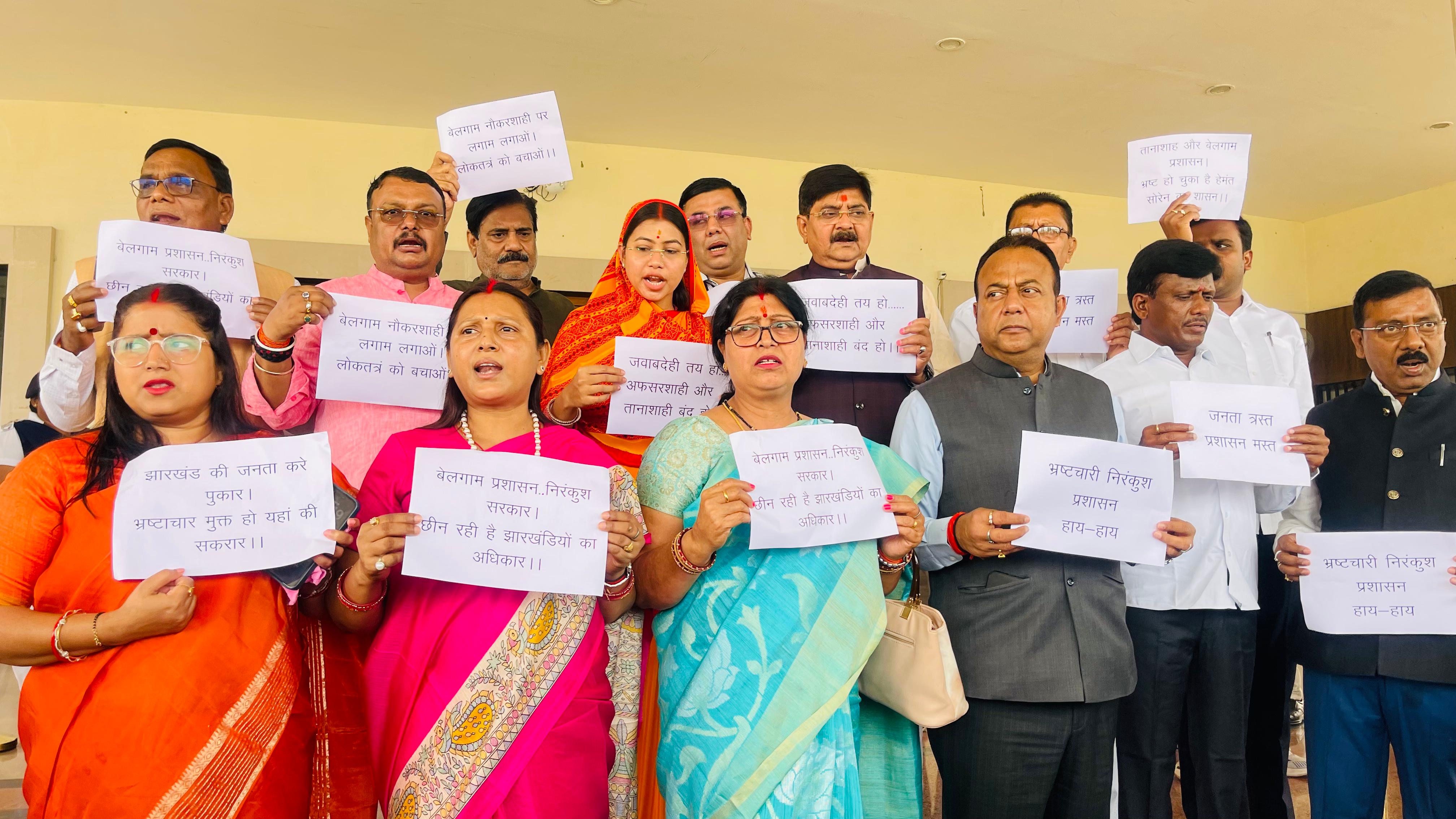 बेलगाम पुलिस प्रशासन और तानाशाही सरकार के खिलाफ विधानसभा में भाजपा का जोरदार प्रदर्शन