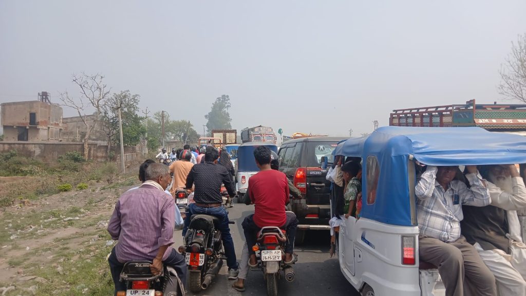उझानी/बदायूं। बरेली–मथुरा हाईवे पर सिंह हवेली के सामने एक ट्रक का एक्सल टूट जाने से सड़क पर लंबा जाम लग गया। करीब दो घंटे तक दोनों ओर वाहनों की लंबी कतारें लगी रहीं, जिससे राहगीरों को भारी परेशानी का सामना करना पड़ा। जानकारी के अनुसार हाईवे पर निर्माण कार्य चलने के कारण फिलहाल एक ही साइड से वाहनों का आवागमन कराया जा रहा है। शुक्रवार सुबह एक ट्रक का एक्सल अचानक टूट गया, जिससे वह बीच सड़क पर ही खड़ा हो गया और यातायात बाधित हो गया। ट्रक के खराब होने के कारण हाईवे के दोनों ओर वाहनों की लंबी लाइन लग गई। सूचना मिलने पर पुलिस मौके पर पहुंची और काफी मशक्कत के बाद ट्रक को सड़क के किनारे कराया। इसके बाद पुलिसकर्मियों ने एक साइड वाहनों को रोककर दूसरी साइड से यातायात को धीरे-धीरे पास कराया। करीब दो घंटे बाद ट्रक को हटाए जाने के बाद ही यातायात पूरी तरह से सुचारू हो सका।