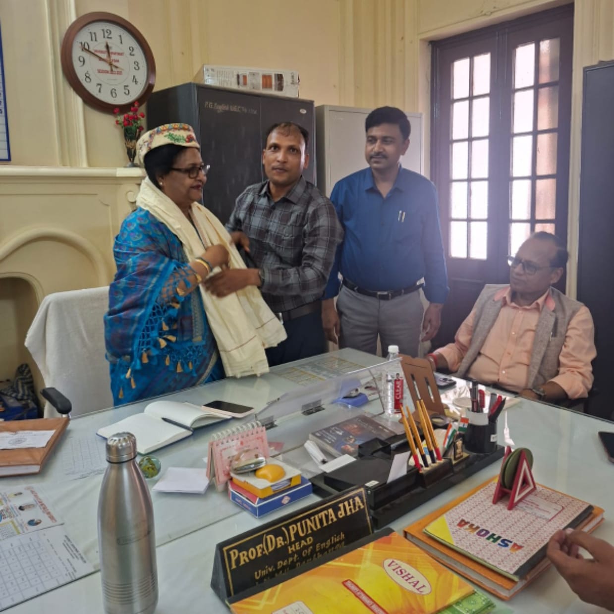 बैठक में पीएच.डी. शोध कार्य से जुड़े अनेक महत्वपूर्ण विषयों पर गंभीरतापूर्वक चर्चा की गई। विशेष रूप से कृत्रिम बुद्धिमत्ता (AI) के बढ़ते प्रयोग, शोध कार्य में प्लेगरिज़्म (Plagiarism) की समस्या, शोध की गुणवत्ता और मौलिकता बनाए रखने के उपायों पर विस्तृत विचार-विमर्श हुआ। इसके अतिरिक्त यह भी प्रस्तावित किया गया कि शोधार्थियों के कार्य की नियमित निगरानी के लिए प्रत्येक छह महीने पर प्रोग्रेस रिपोर्ट विभाग में जमा करना अनिवार्य किया जाए। उपस्थित शिक्षकों ने इन विषयों पर अपने-अपने विचार और सुझाव प्रस्तुत किए। कार्यक्रम की अध्यक्षता अंग्रेज़ी विभाग की विभागाध्यक्ष एवं मानविकी संकाय की अधिष्ठाता प्रो पुनीता झा ने की। इस अवसर पर प्रो ए. के. बच्चन शोध विशेषज्ञ के रूप में उपस्थित रहे। वहीं प्रो पुनिता झा के मानविकी संकायाध्यक्ष बनने पर सी एम साइंस कॉलेज के अंग्रेजी-प्राध्यापक डॉ युगेश्वर साह ने पाग एवं चादर से सम्मानित किया।