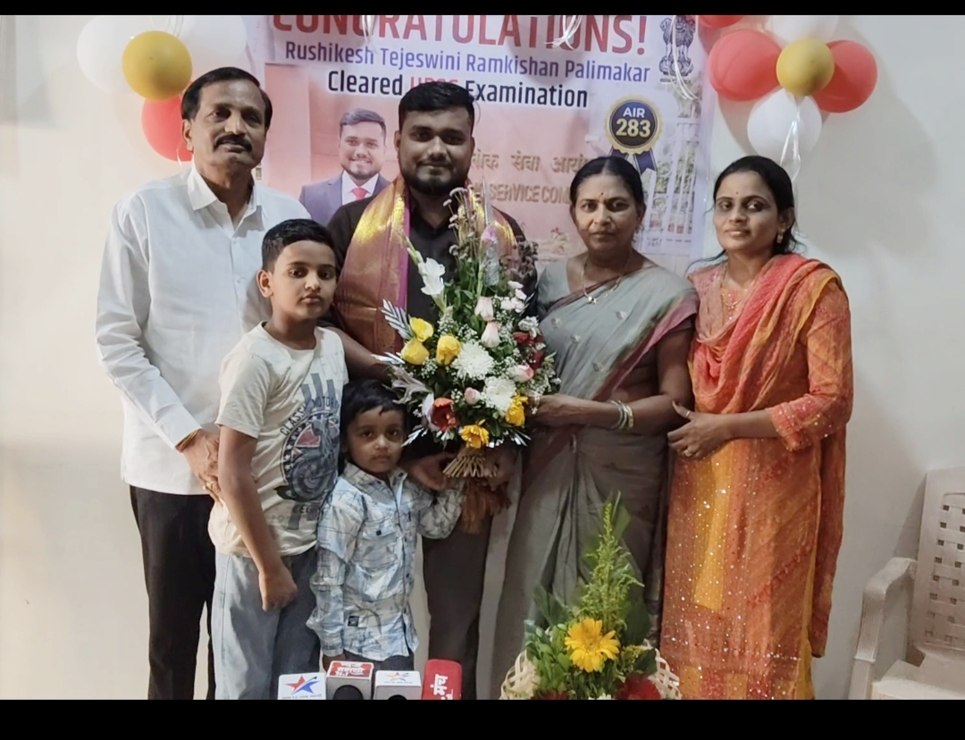 नांदेड :यूपीएससी 2025 च्या परीक्षेत नांदेड जिल्ह्यातील कौठा ता . कंधार येथील ऋषिकेश रामकिशन पालीमकर हा विद्यार्थी देशपातळीवर 283 व्या रँकिंग वर उत्तीर्ण झाला .त्याच्या घवघवीत असल्यामुळे नांदेड जिल्ह्याचे नाव राज्यस्तरावर लौकिक झाले .ऋषिकेश चे वडील प्राध्यापक रामकिशन पालीमकर व सौ तेजाबाई पालीमकर व बहिण पूजा होळगे यांच्या परिवारात आनंद उत्सव साजरा झाला .प्रा. रामाकिशन व सौ तेजाबाई व सौ . पुजा होळगे,गजानन होळगे, महादेव कनके,शिवाजी पालीमकर, गुरुनाथ कनके, किरण कणके दुबई व मित्रपरिवारातर्फे शुभेच्छाचा वर्षाव होत आहे .