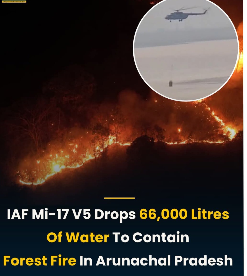 IAF MI-17V5 Drops 66,000 Litres of water to contain forest fire in Arunachal Pradesh's East Siang District.