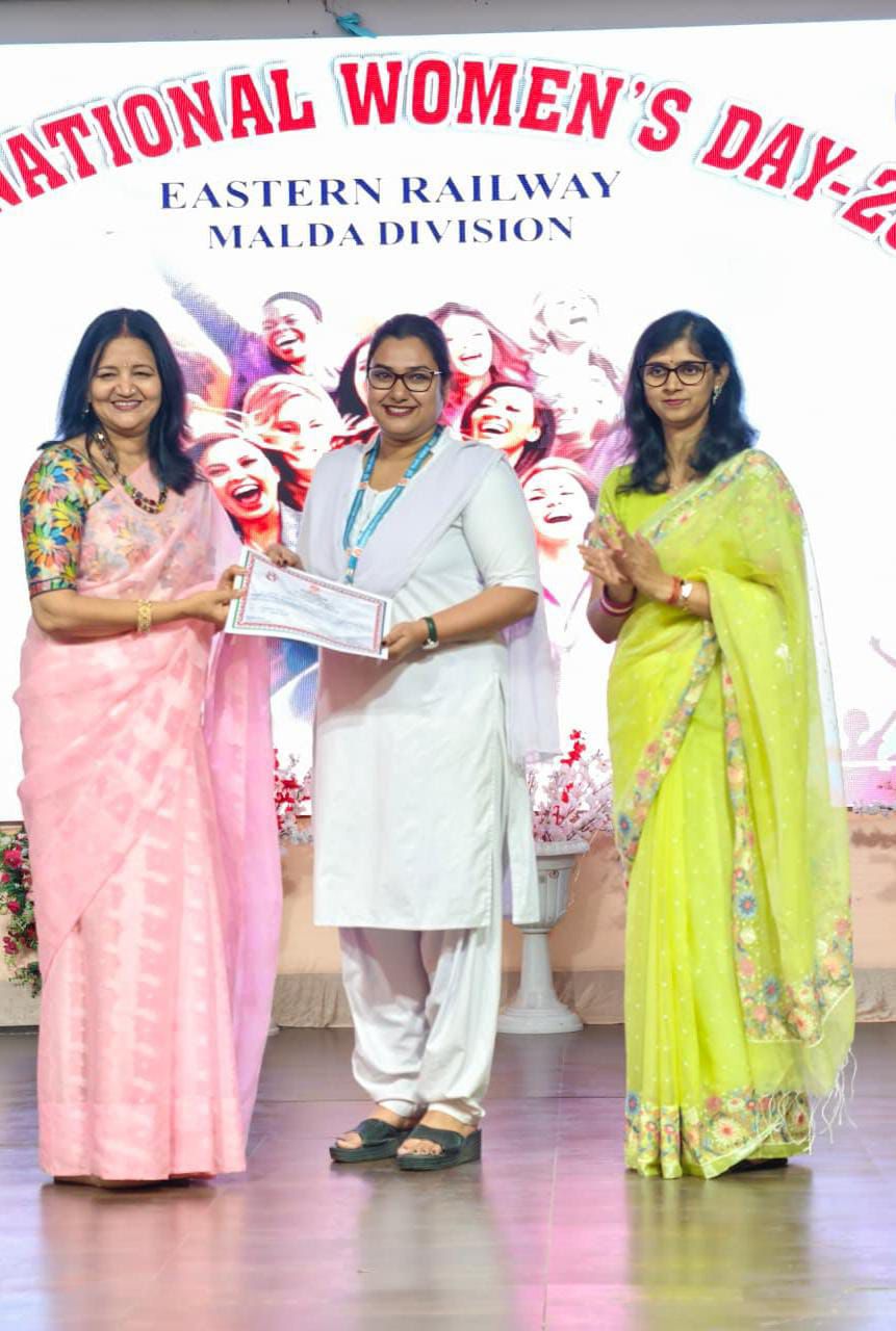 A key highlight of the day was the felicitation of outstanding women employees from various departments across Malda Railway Division. They were honoured with Merit Certificates and a cash award of ₹1000 each, recognising their dedication and exceptional service.