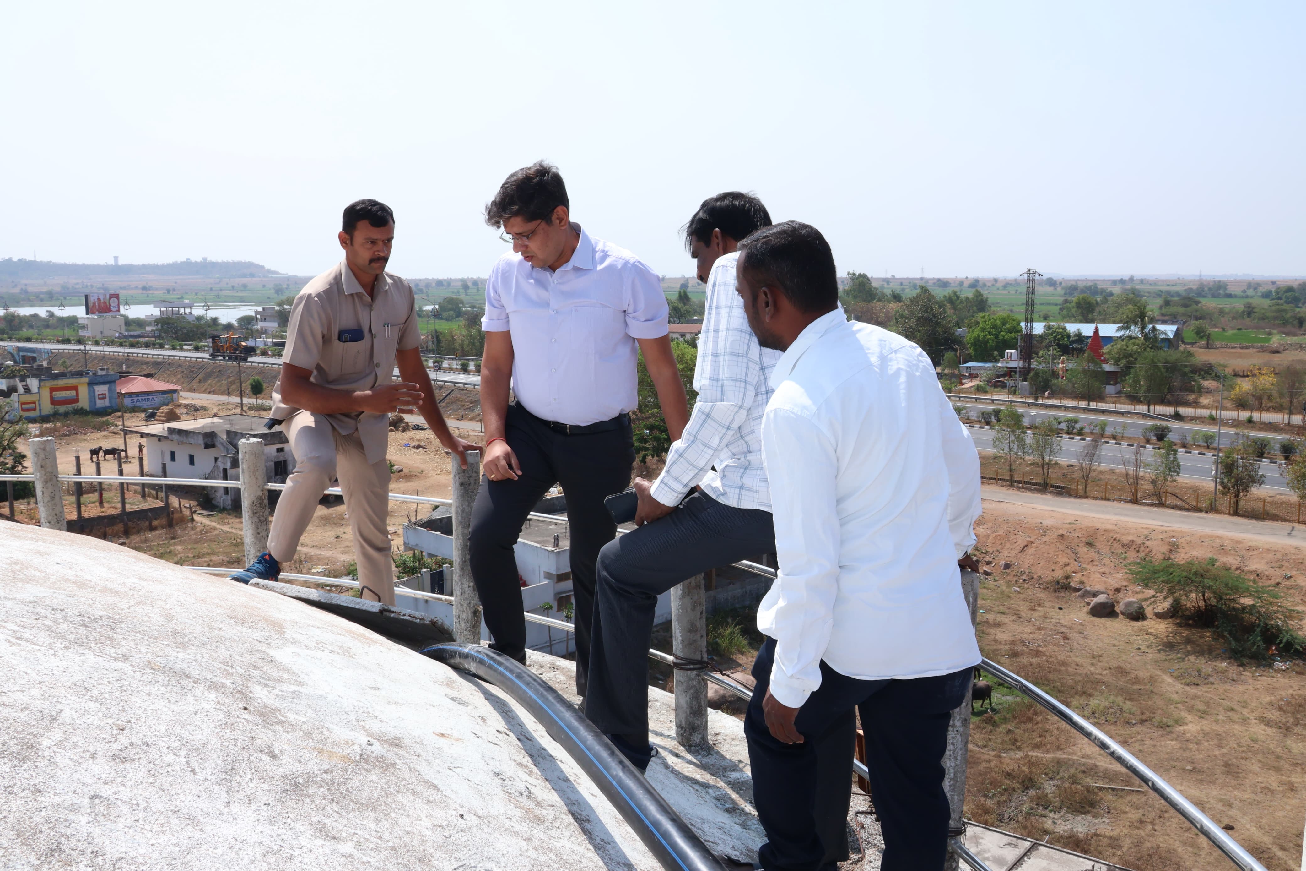 వాటర్ ట్యాంక్ ఎక్కి వాటర్ ట్యాంక్ శుభ్రతను పరిశీలించి వర్కర్లను అభినందించి సన్మానించిన జిల్లా కలెక్టర్ ఆశిష్ సాంగ్వాన్.