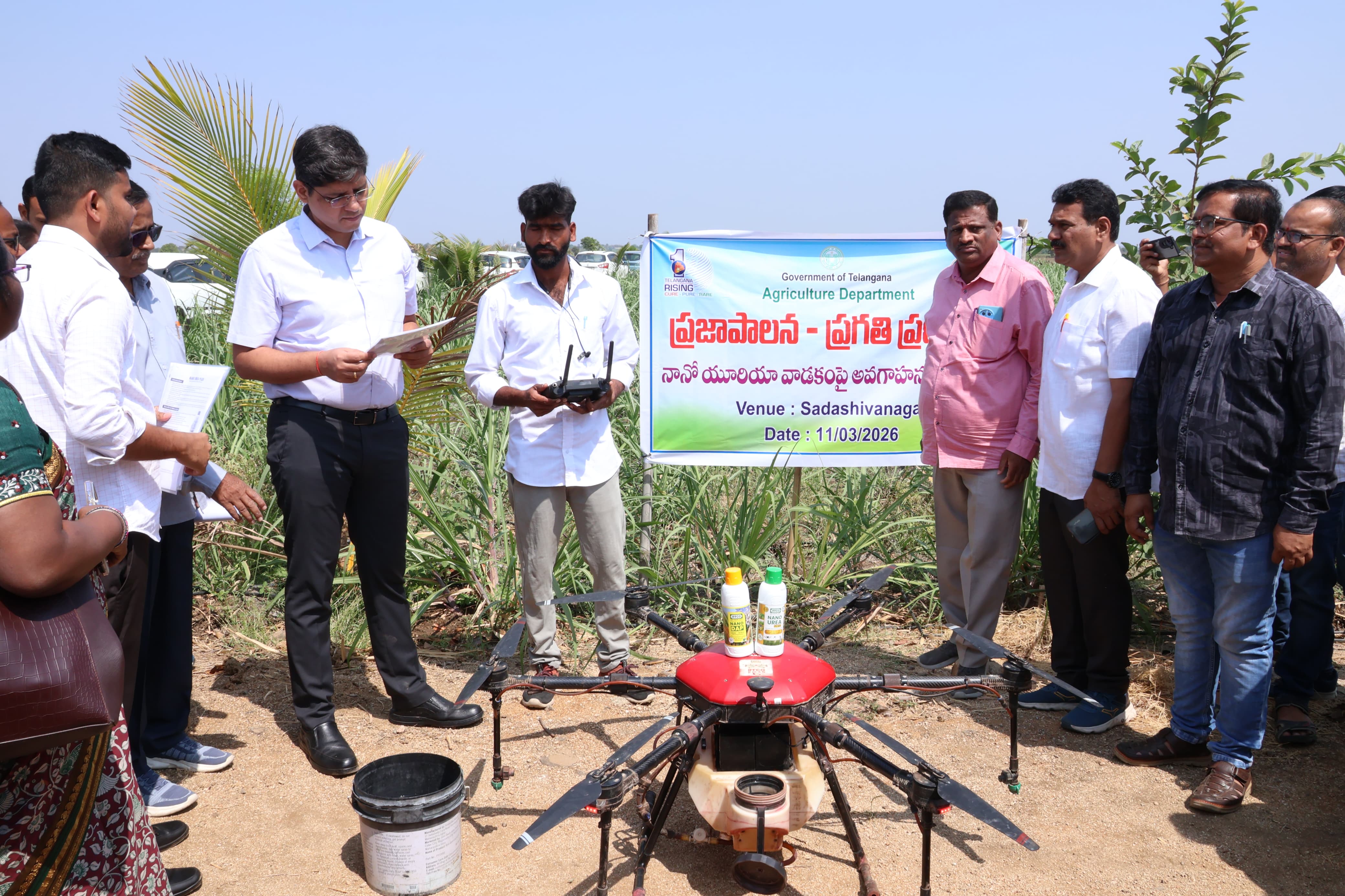 ప్రజాపాలన – ప్రగతి ప్రణాళిక కార్యక్రమంలో జిల్లాలోని సదాశివనగర్ మండలం లోని వ్యవసాయ క్షేత్రంలో వ్యవసాయ శాఖ ఆధ్వర్యంలో నానో యూరియా వాడకంపై ఆగాహన