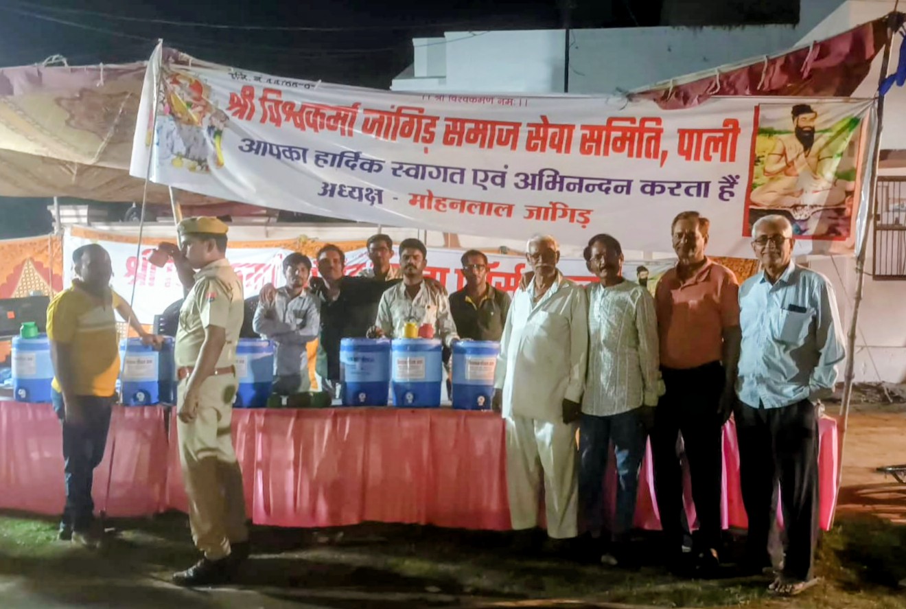 श्री विश्वकर्मा जांगिड़ समाज सेवा समिति पाली की और से शीतला सप्तमी मेले में की गई ठंडे पानी की व्यवस्था।