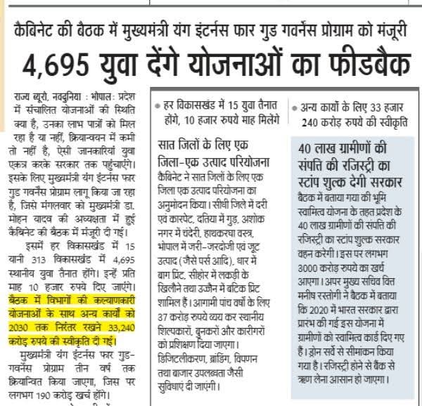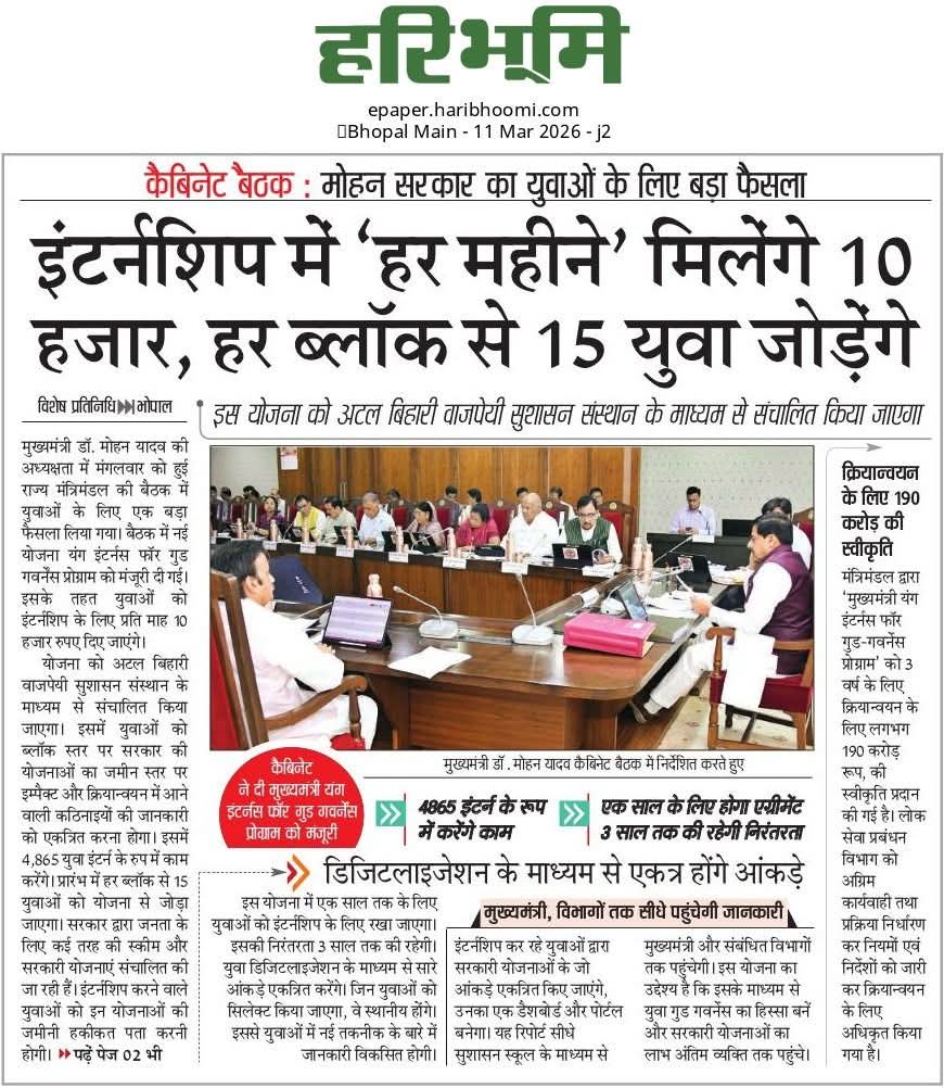 मुख्यमंत्री यंग इंटर्न्स फॉर गुड-गवर्नेंस प्रोग्राम को मंजूरी
