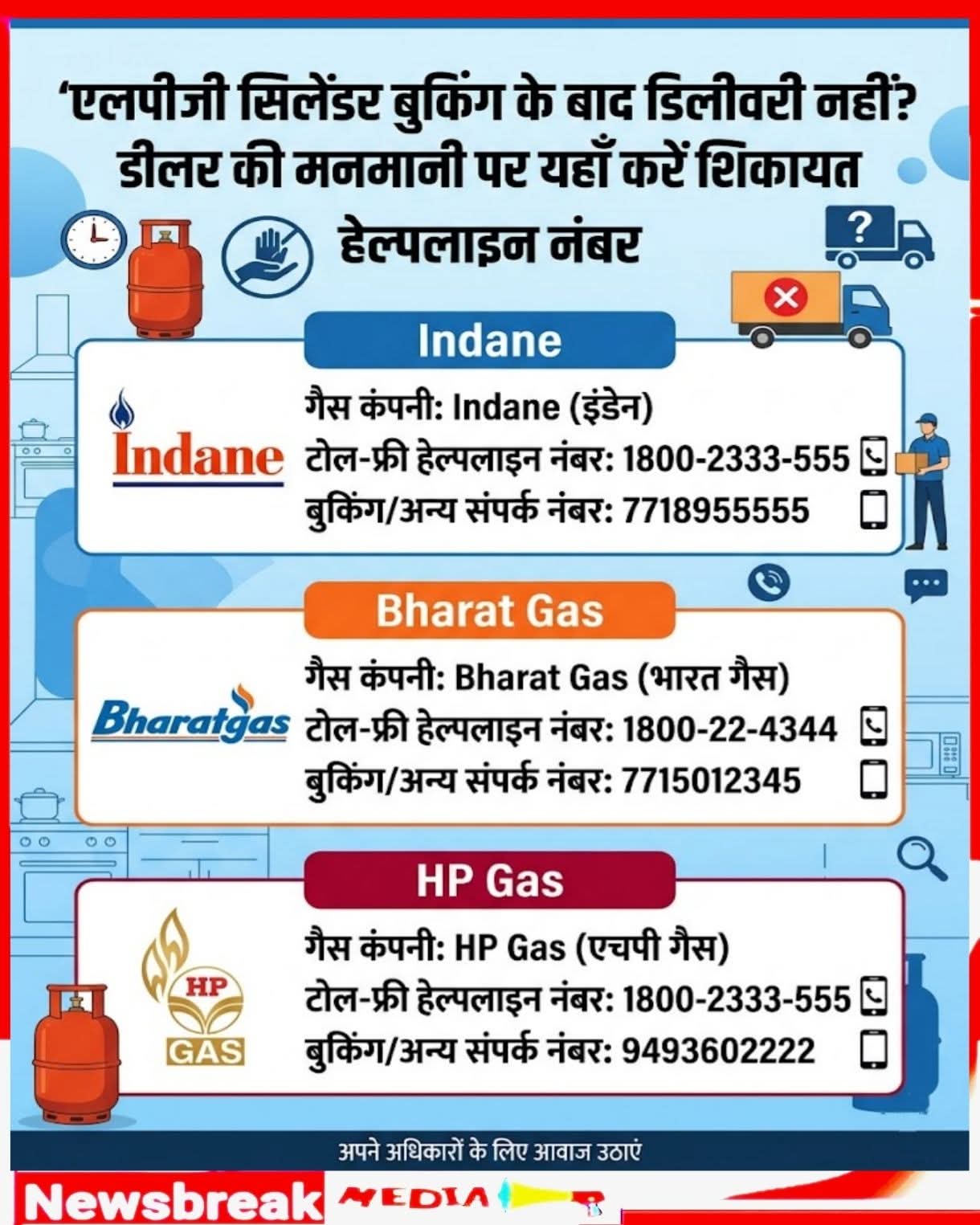अक्सर देखा गया है कि सप्लाई में देरी का बहाना बनाकर कुछ गैस डीलर ग्राहकों से अतिरिक्त पैसों की मांग करते हैं या डिलीवरी में जानबूझकर देरी करते हैं। अगर आपके साथ भी ऐसी स्थिति बनती है, तो आप चुप बैठने के बजाय संबंधित कंपनी के आधिकारिक टोल-फ्री नंबरों पर अपनी शिकायत दर्ज करा सकते हैं।