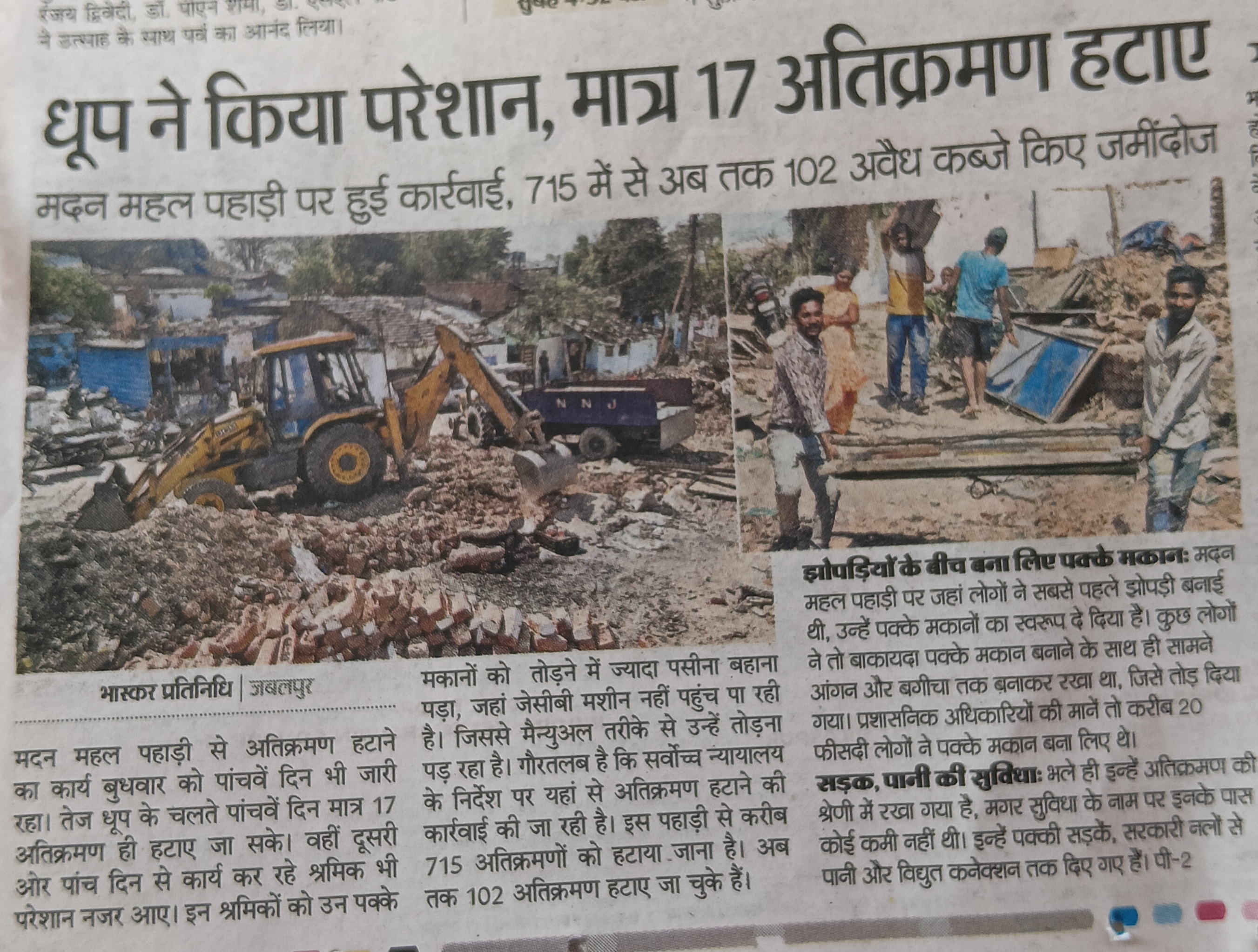 मदन महल की पहाड़ी पर कार्यवाही 715 में अब तक 120 अवैध कब्जे किए जमींदोज