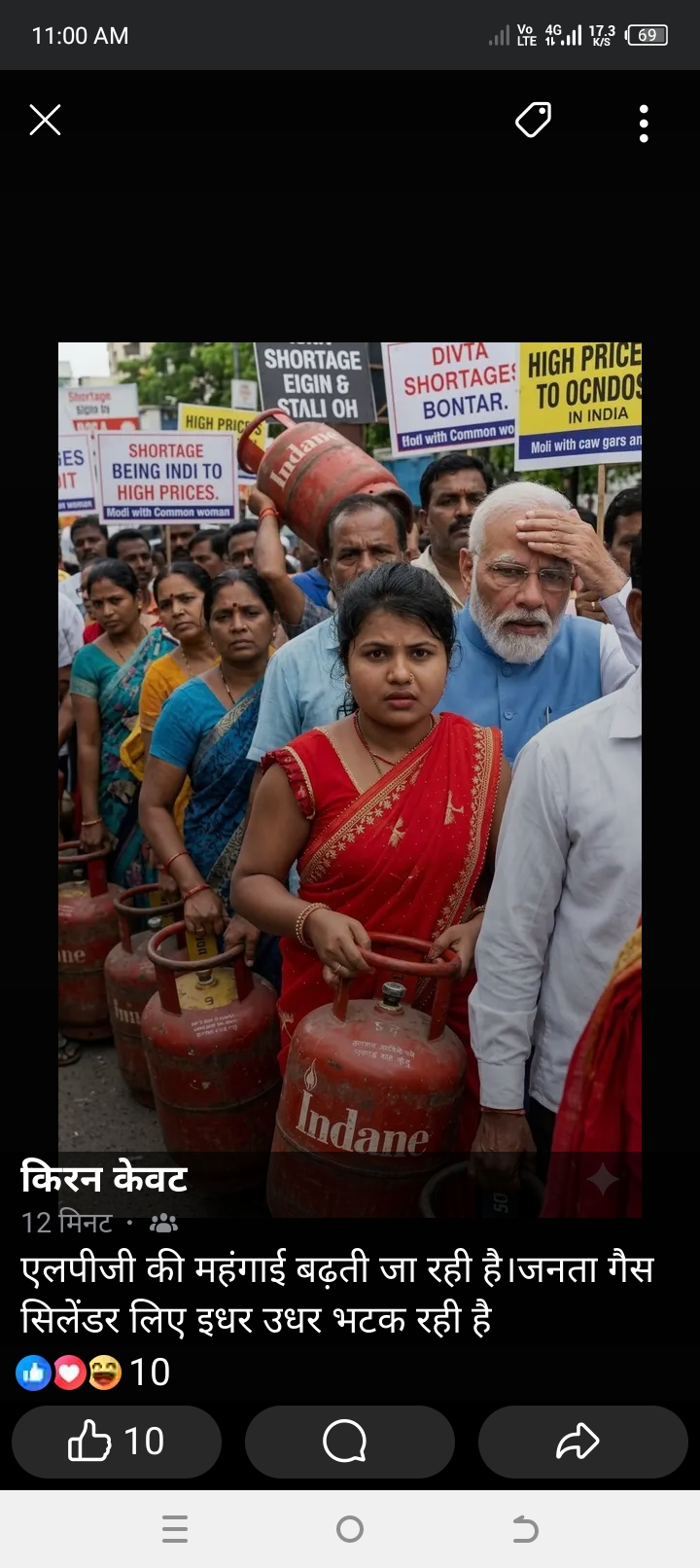 एलपीजी की महंगाई बढ़ती जा रही है।जनता गैस सिलेंडर लिए इधर उधर भटक रही है₹