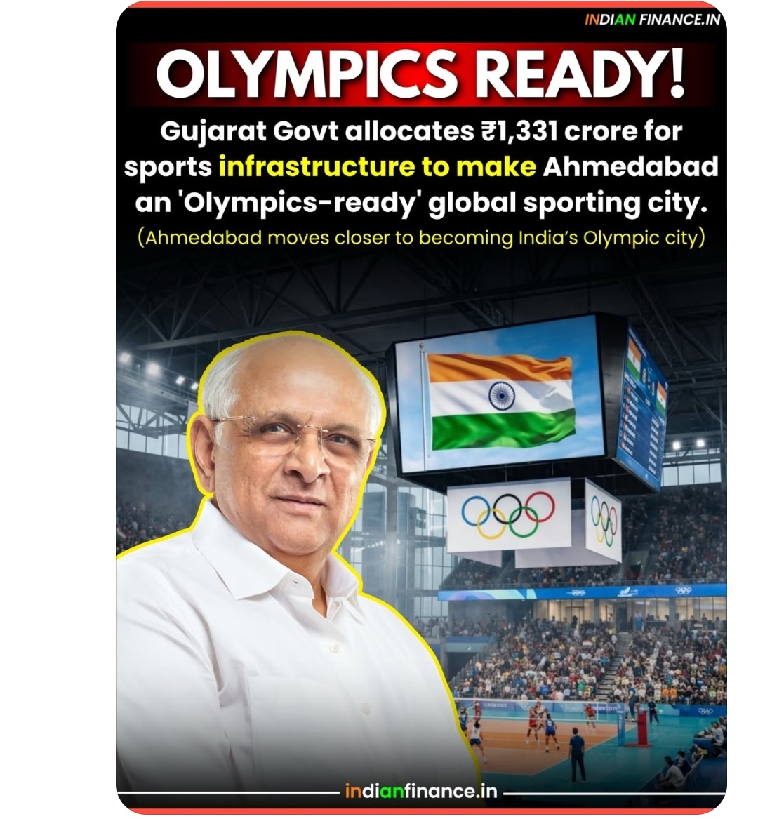 ଗୁଜରାଟ ସରକାର ଘୋଷଣା କଲା 1,331 କୋଟି ଟଙ୍କା ଅଲମ୍ପିକରେ କ୍ରିଡ଼ା ପାଇଁ ଖର୍ଚ୍ଚ କରିଛି। ଆଗାମୀ ଦିନରେ ଅହମଦାବାଦରେ ଗ୍ଲୋବାଲ ସ୍ପୋର୍ଟସ ସିଟି ହେବାକୁ ଯାଉଛି।