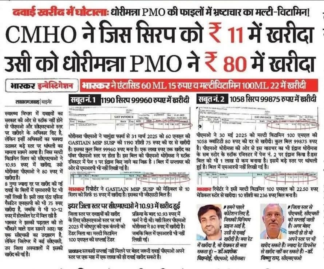 जिस सिरप को एक सरकारी स्तर पर लगभग ₹11 में खरीदा गया, वही दवा दूसरे स्तर पर ₹80 में खरीदी जा रही है, तो साफ है कि कहीं न कहीं सिस्टम में बड़ी गड़बड़ी या मिलीभगत जरूर है। दवाइयों जैसी जरूरी चीज़ में इस तरह की अनियमितता सीधे-सीधे जनता के स्वास्थ्य और सरकारी पैसे दोनों के साथ खिलवाड़ है।