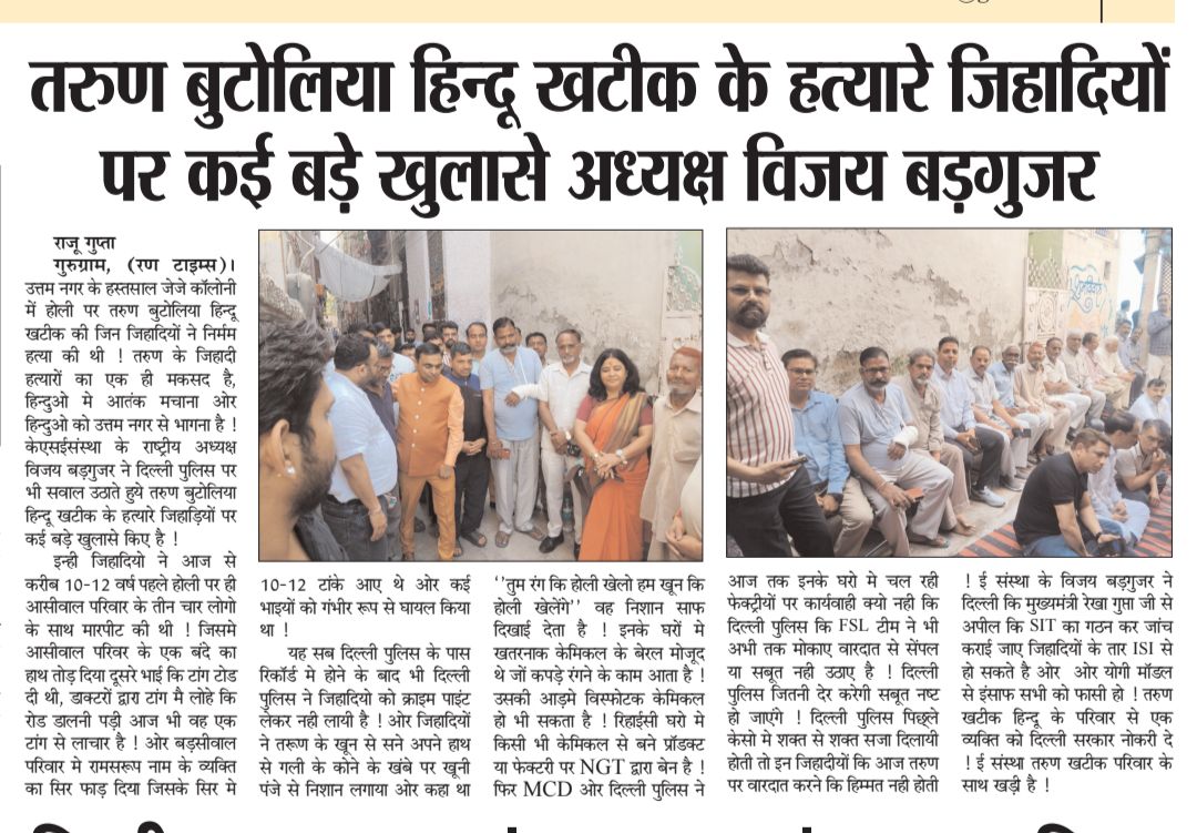 तरुण बुटोलिया हिन्दू खटीक के हत्यारे जिहादियों पर कई बड़े खुलासे अध्यक्ष विजय बड़गुजर*
