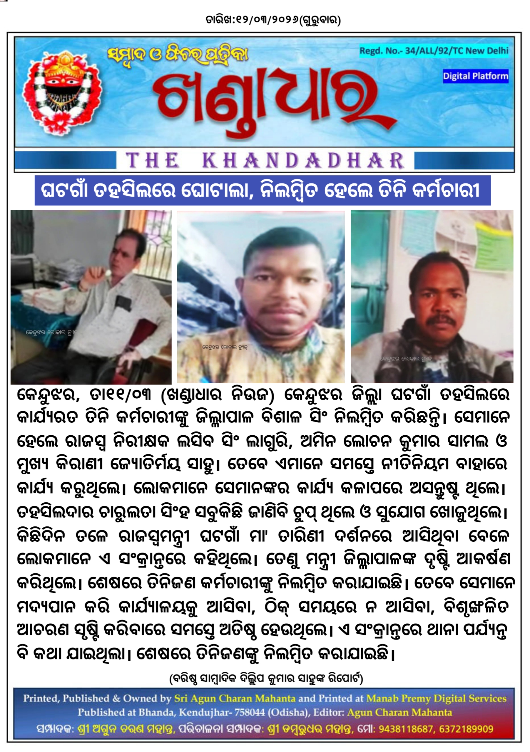 ଖଣ୍ଡାଧାର ନିଉଜ- ବରିଷ୍ଠ ସାମ୍ବାଦିକ ଦିଲ୍ଲିପ କୁମାର ସାହୁଙ୍କ ରିପୋର୍ଟ।