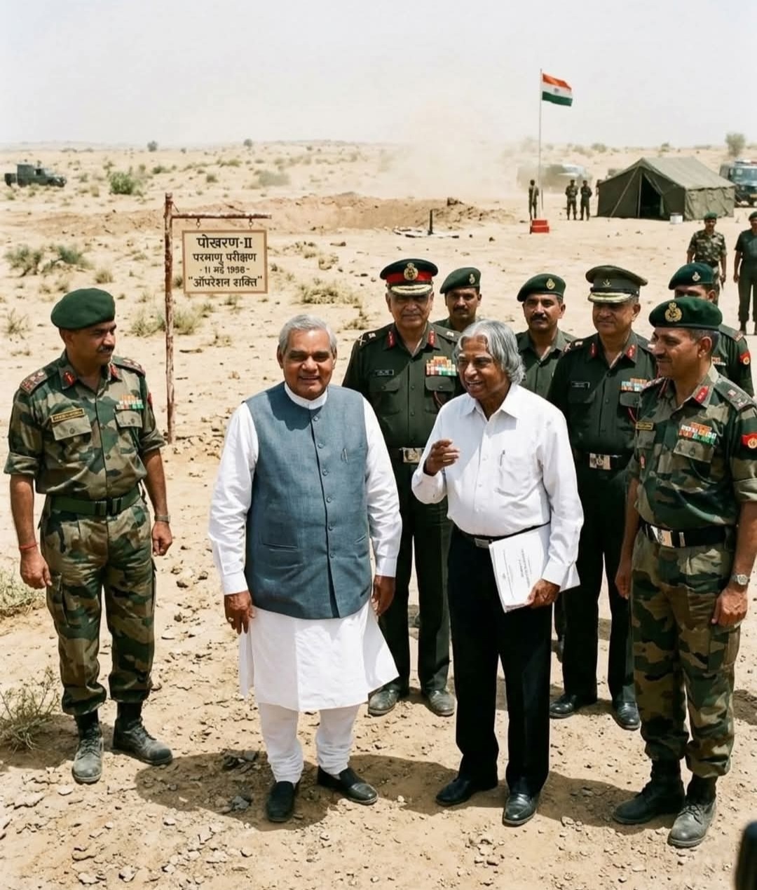 রাজস্থানের পোখরানে পরমাণু বোমা পরীক্ষা সফলভাবে হয় l প্রধানমন্ত্রী অটল বিহারী বাজপাই ও বিজ্ঞানী রাষ্ট্রপতি এপিজে আবদুল কালাম l