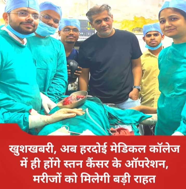 मरीजों को मिलेगी बड़ी राहत, स्तन कैंसर जैसी गंभीर और जानलेवा बीमारी से जूझ रही महिलाओं को ऑपरेशन के लिए लखनऊ, कानपुर या अन्य महानगरों की नहीं लगानी पड़ेगी दौड़, मेडिकल कॉलेज के सर्जरी विभाग के विशेषज्ञ चिकित्सकों ने स्थानीय स्तर पर ही स्तन कैंसर के ऑपरेशन शुरू करने का लिया निर्णय, निजी अस्पतालों में स्तन कैंसर के ऑपरेशन पर एक से डेढ़ लाख रुपये तक का आता है खर्च, लेकिन अब हरदोई मेडिकल कॉलेज में यह जटिल सर्जरी मात्र निर्धारित सरकारी शुल्क में ही संभव हो सकेगी, ग्रामीण और आर्थिक रूप से कमजोर वर्ग की महिलाओं को समय पर और सस्ता इलाज मिल सकेगा, जल्द ही सर्जरी विभाग को अत्याधुनिक मशीनों से भी सुसज्जित किया जाएगा