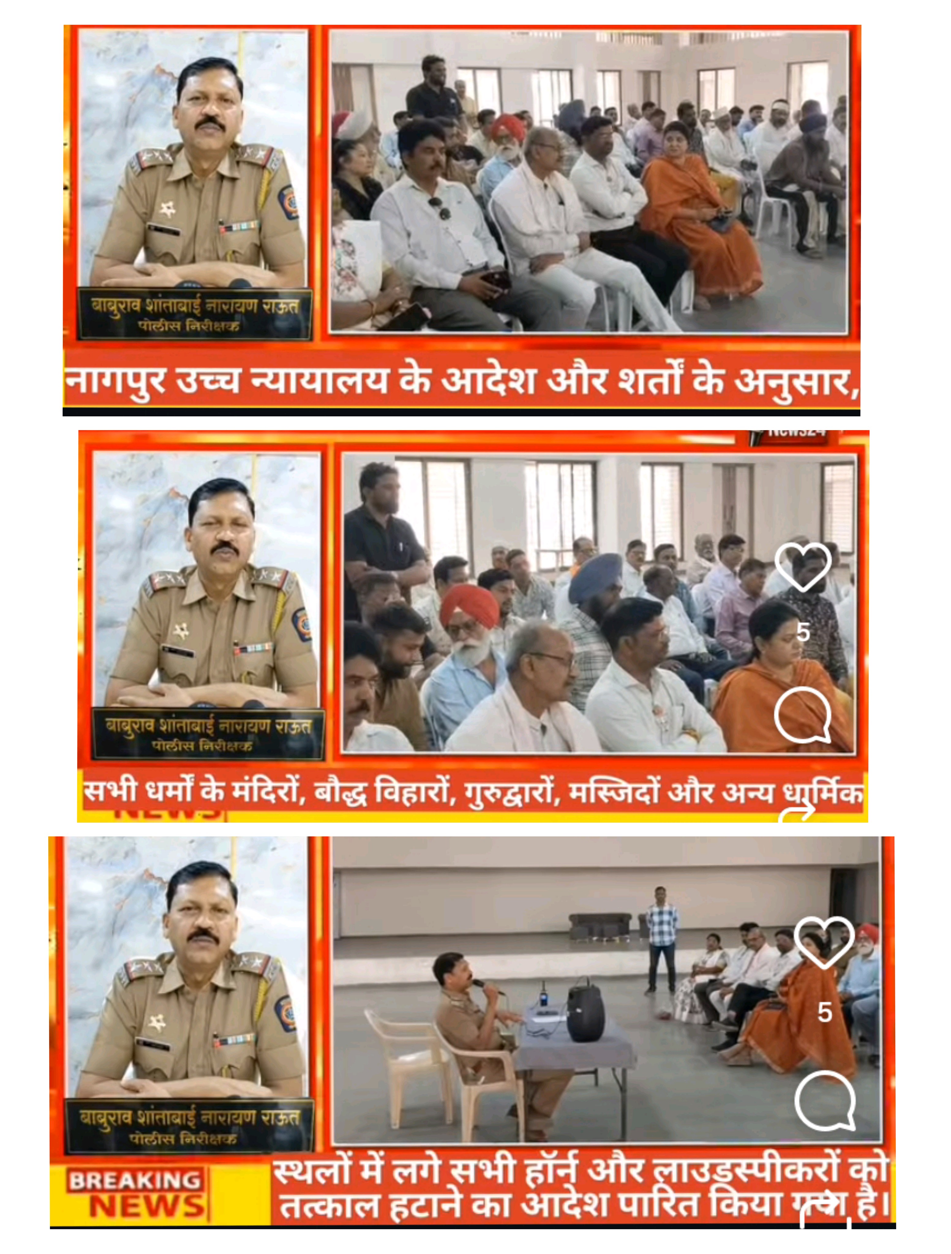 नागपुर उच्च न्यायालय के आदेश और शर्तों के अनुसार, सभी धर्मों के मंदिरों, बौद्ध विहारों, गुरुद्वारों, मस्जिदों और अन्य धार्मिक स्थलों में लगे सभी हॉर्न और लाउडस्पीकरों को तत्काल हटाने का आदेश पारित किया गया है। अन्यथा, किसी भी धार्मिक स्थल में लगे ऐसे हॉर्न और लाउडस्पीकर (जिनकी ध्वनि सार्वजनिक स्थानों पर आम जनता को सुनाई देती है) हटा दिए जाएंगे।