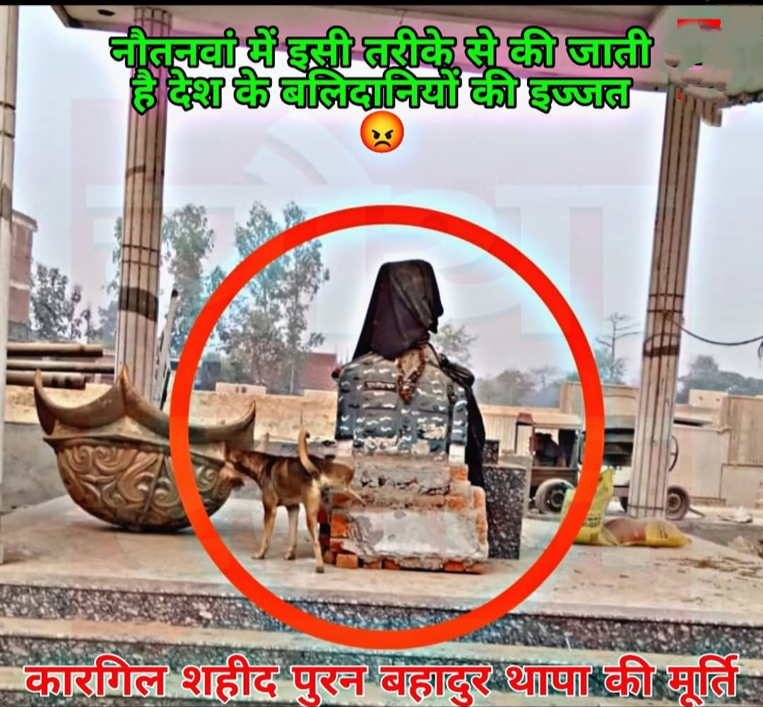 महराजगंज जनपद के नौतनवा कस्बे में स्थित कारगिल शहीद पूरन बहादुर थापा की प्रतिमा के साथ कथित रूप से लापरवाही और अनादर का मामला सामने आया है। प्रतिमा की हालत खराब होने और उसे ढककर रखे जाने की तस्वीर सोशल मीडिया पर वायरल होने के बाद स्थानीय लोगों में भारी नाराजगी देखने को मिल रही है।