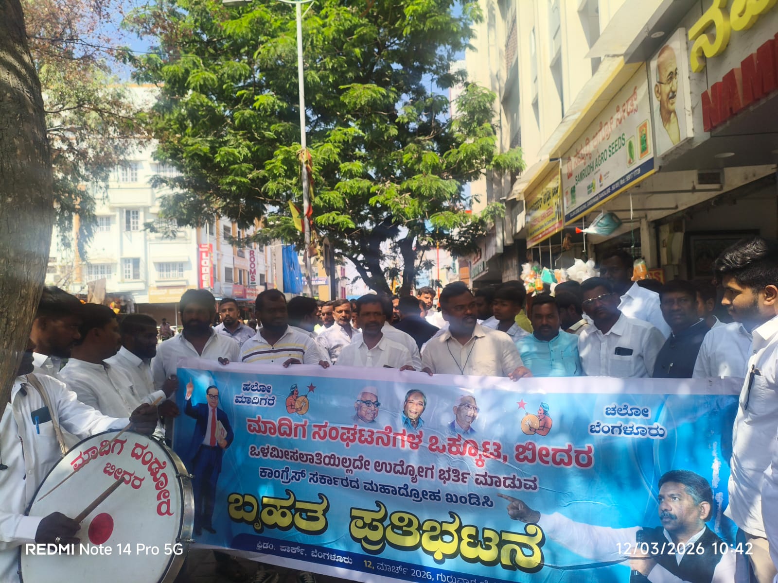 ಒಳ ಮೀಸಲಾತಿ ಜಾರಿಗೊಳಿಸಿ ಸರ್ಕಾರಿ ಹುದ್ದೆ ಭರ್ತಿ ಮಾಡುವಂತೆ ಒತ್ತಾಯಿಸಿ ಹಾಗೂ 56'453 ಸರ್ಕಾರಿ ನೌಕರಿ ನೇಮಕಾತಿ ಆದೇಶ ರದ್ದುಪಡಿಸುವಂತೆ ಇಂದು ಬೆಂಗಳೂರು ಫ್ರೀಡಮ್ ಪಾರ್ಕನಲ್ಲಿ ಮಾದಿಗ ಸಂಘಟನೆಗಳ ಒಕ್ಕೂಟದಿಂದ ಬೃಹತ್ ಪ್ರತಿಭಟನೆ ಮಾಡಲಾಯಿತು. ಈ ಸಮಯದಲ್ಲಿ ಜಾಂಬವ ಯುವಸೇನೆಯ ಜಿಲ್ಲಾಧ್ಯಕ್ಷರು ಶ್ರೀ ಪೀಟರ್ ಶ್ರೀಮಂಡಲ ರಾಜು ಕಡಿಯಾಳ್, ಫೆರ್ನಾಂಡಿಸ್ ಹಿಪ್ಪಗಾoವಾ ಸೂರ್ಯಕಾಂತ್ ದಂಡಿ ಕಾಡವಾದ ಹಾಗೂ ದಾವಿದ ಹಲುಗೆ ಇನ್ನು ಅನೇಕ ಸಮಾಜದ ಹಿರಿಯ ಮುಖಂಡರು ಹೋರಾಟಗಾರರು ಇದ್ದರು .