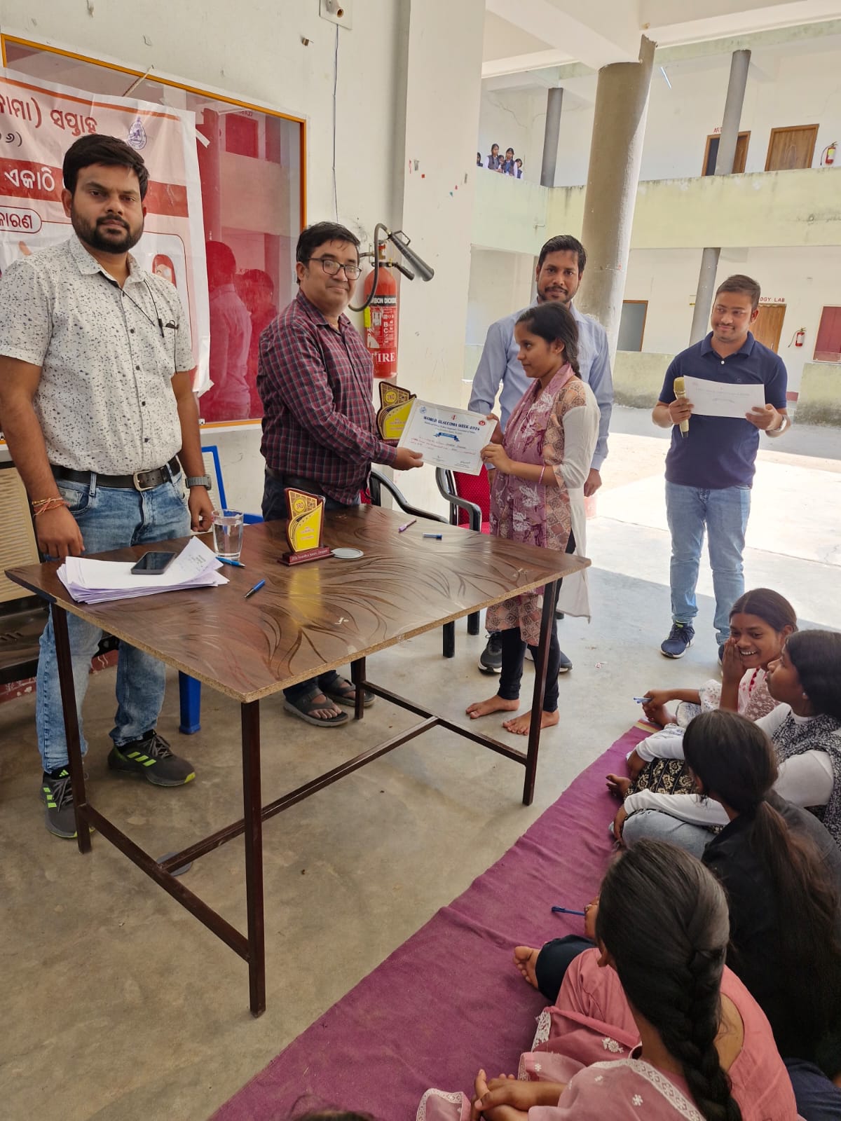 ଏହି ଅବସରରେ “ଗ୍ଲକୋମା” ବିଷୟକୁ ନେଇ ଛାତ୍ରଛାତ୍ରୀମାନଙ୍କ ମଧ୍ୟରେ ଏକ କ୍ୱିଜ୍ ପ୍ରତିଯୋଗିତା ଆୟୋଜିତ ହୋଇଥିଲା। ପ୍ରତିଯୋଗିତାରେ ଏକାଦଶ ଶ୍ରେଣୀର ଜସ୍ମିତା ବେହେରା ପ୍ରଥମ ସ୍ଥାନ ଅଧିକାର କରିଥିବାବେଳେ ସନ୍ଦୀପା ପ୍ରଧାନ ଦ୍ୱିତୀୟ ଓ ଅଙ୍କିତା ସାହୁ ତୃତୀୟ ସ୍ଥାନ ଅଧିକାର କରିଥିଲେ। ବିଜେତା ଛାତ୍ରୀମାନଙ୍କୁ ଅତିଥିମାନଙ୍କ ହସ୍ତରୁ ପୁରସ୍କାର ପ୍ରଦାନ କରାଯାଇଥିଲା।