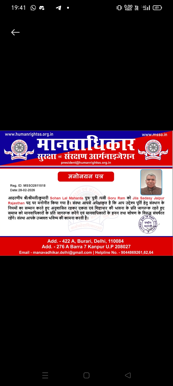 Sohan lal maharda ke manwadhekar me. Jill memer.