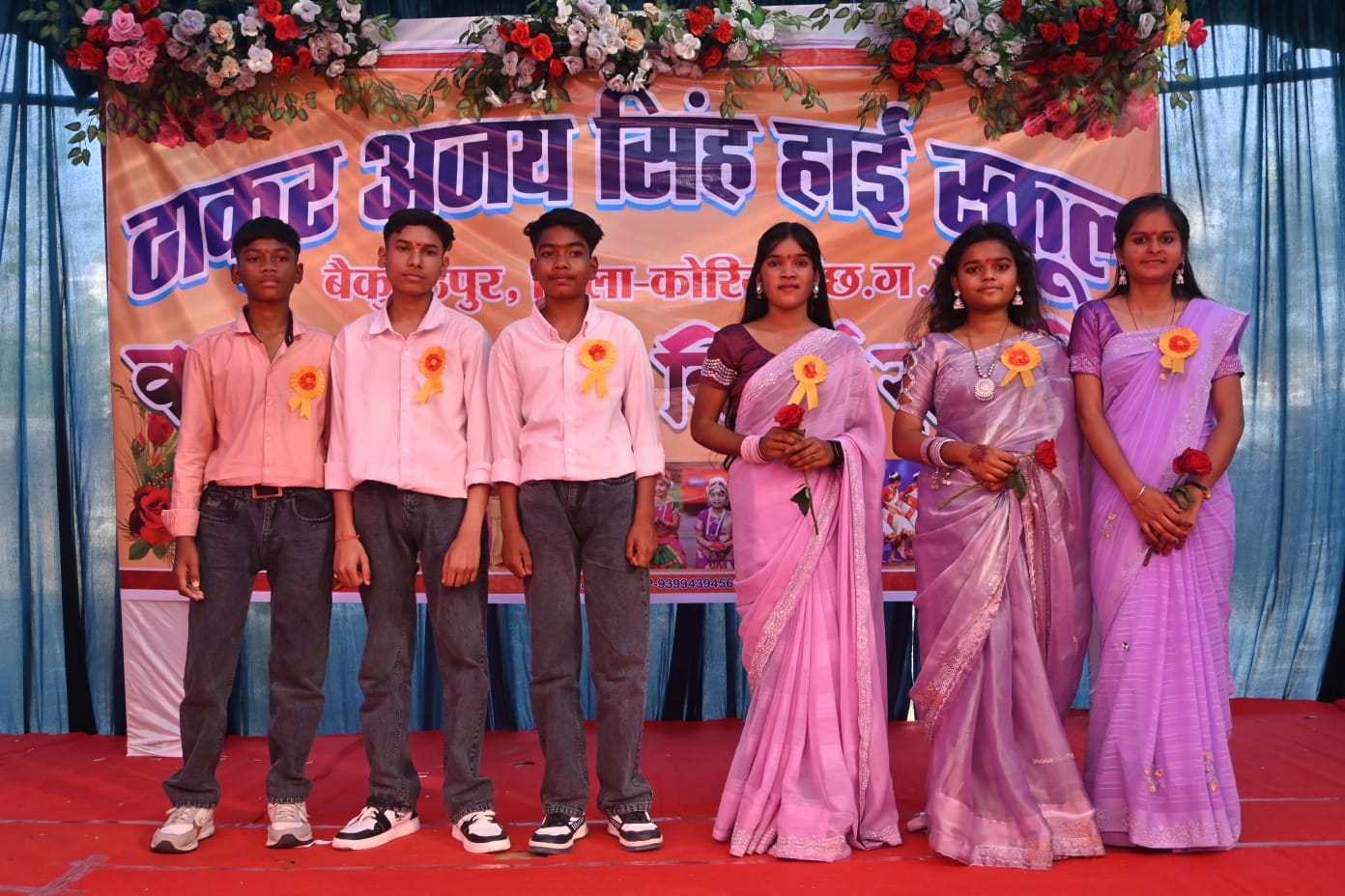​बैकुंठपुर, कोरिया/ विद्यार्थियों के सुदृढ़ नींव के लिए विख्यात स्थानीय ठाकुर अजय सिंह हाई स्कूल में वर्ष 2026 का 'वार्षिक उत्सव सह विदाई समारोह' अत्यंत हर्षोल्लास के साथ संपन्न हुआ। कार्यक्रम में विद्यालय के मेधावी छात्र-छात्राओं, शिक्षकों और प्रबंधन समिति के सदस्यों को सम्मानित किया गया।