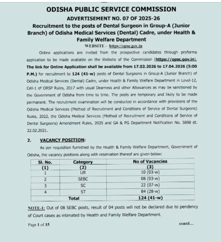 हाल ही में Odisha Public Service Commission द्वारा जारी एक भर्ती विज्ञापन ने देश में आरक्षण व्यवस्था को लेकर एक नई बहस छेड़ दी है। आयोग ने डेंटल सर्जन (Group-A) के 124 पदों पर भर्ती के लिए विज्ञापन जारी किया है, लेकिन पदों का आरक्षण वितरण देखने के बाद सामान्य वर्ग के युवाओं में तीखी प्रतिक्रिया सामने आ रही है।