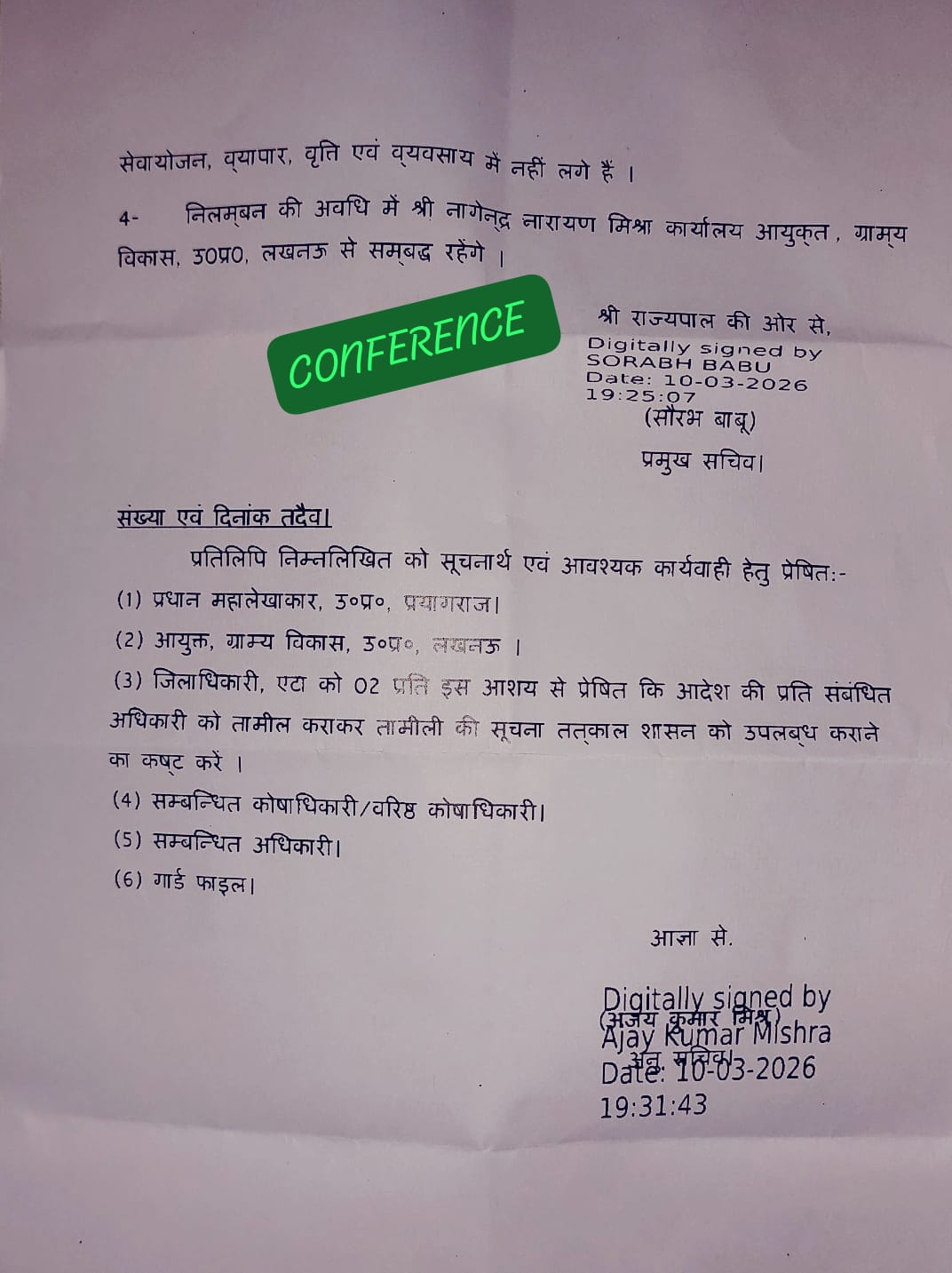 EX CDO एटा नागेद्र नारायण मिश्रा के निलंबन पत्र को पढ़िए 👇*