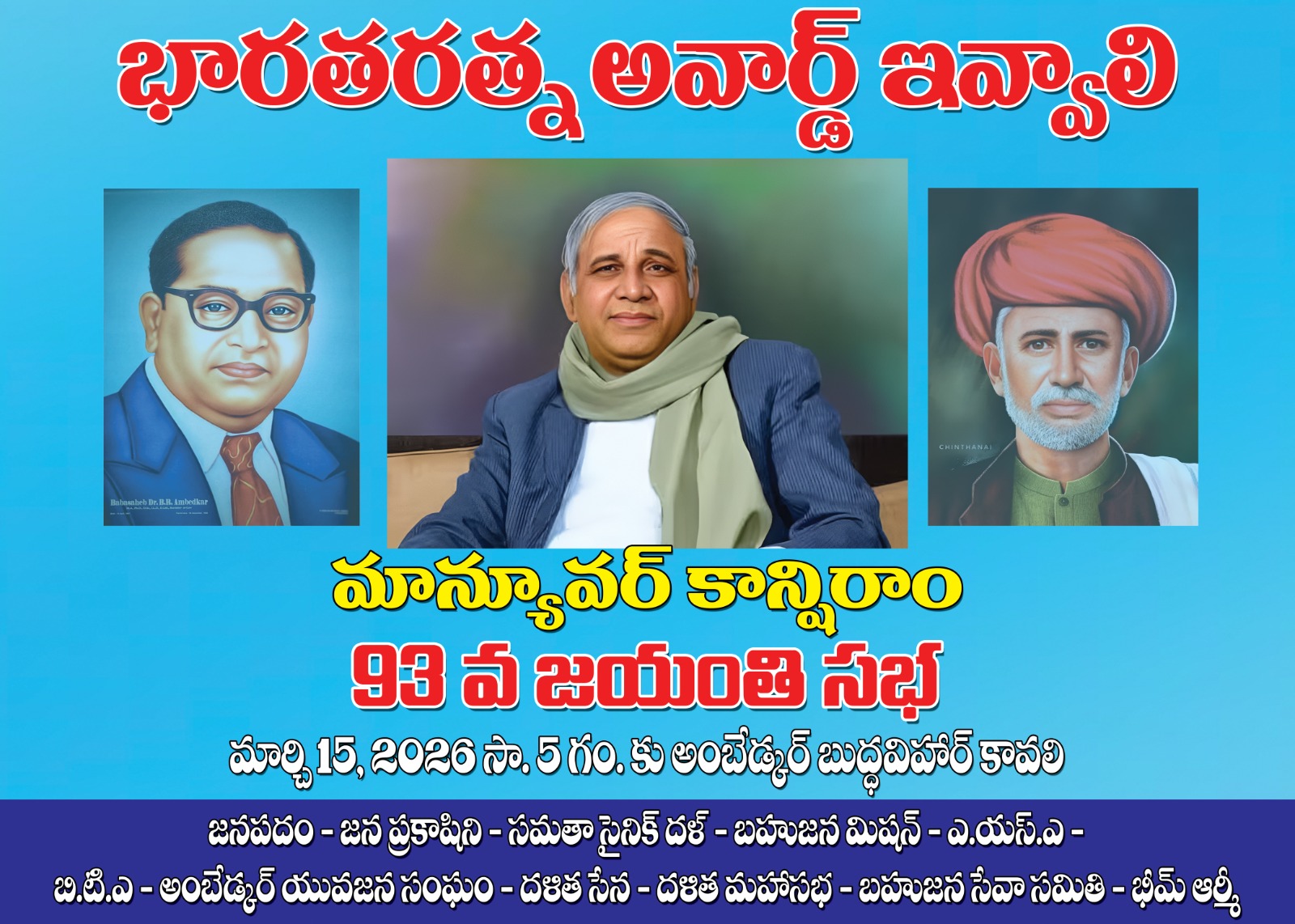 కాబట్టి కాన్షిరాం కు 93 వ జయంతి సందర్భంగా భారతరత్న అవార్డ్ ఇచ్చి తీరాలని డిమాండ్ చేద్ధాం.రండి