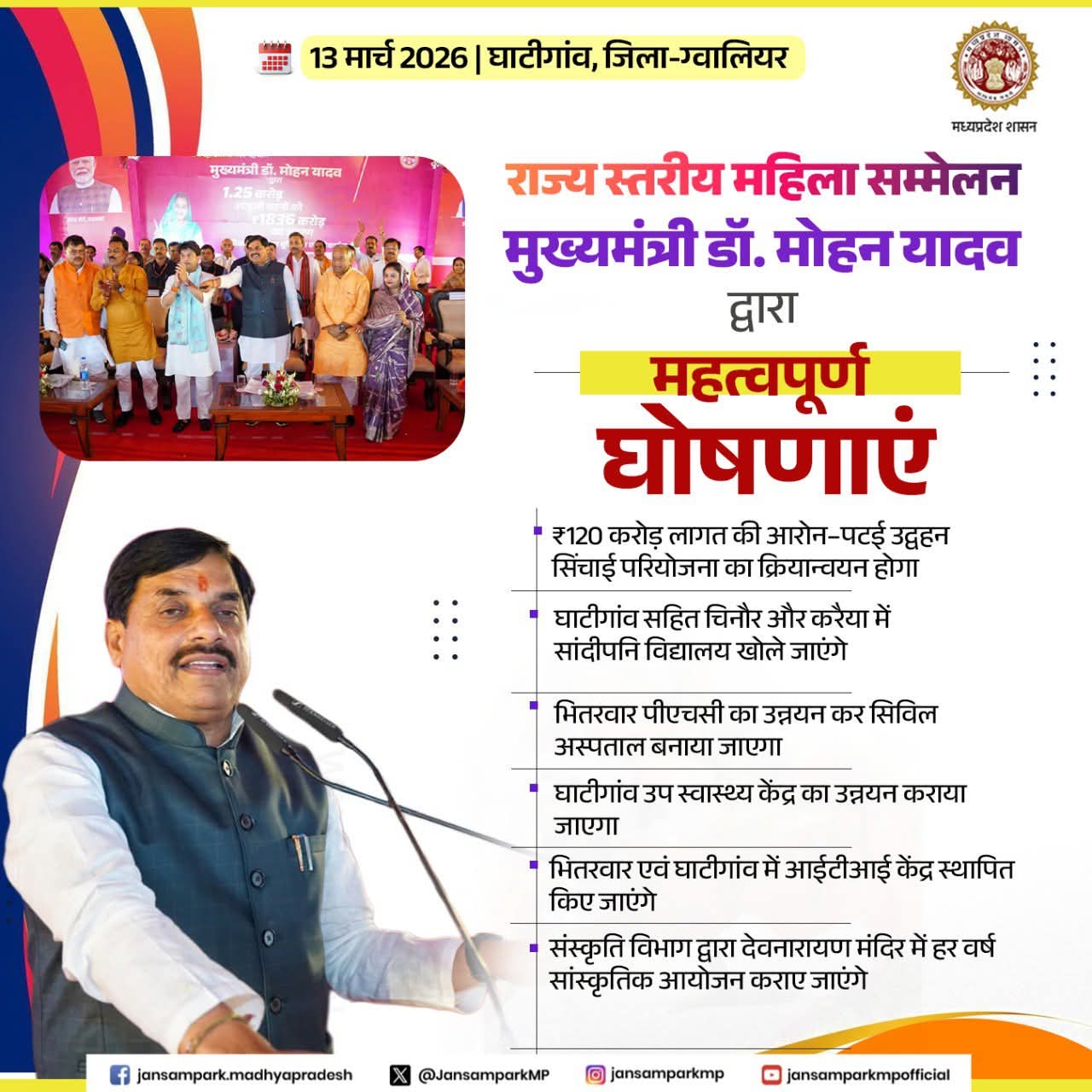Dr Mohan Yadav CM Madhya Pradesh Department of Water Resources, Madhya Pradesh Department of School Education, Madhya Pradesh Directorate of Health Services, Madhya Pradesh Department of Skill Development, Madhya Pradesh #LadliBahnaMP #MadhyaPradesh #Gwalior #JansamparkMP