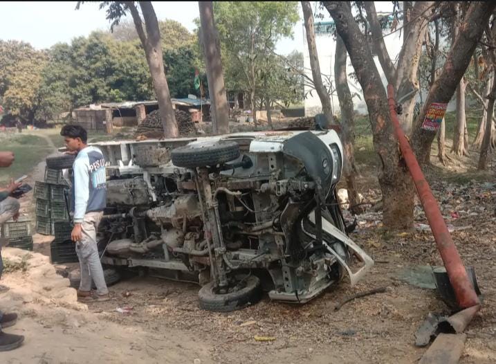 यह घटना अमौना स्थित अलफारुक इंटर कॉलेज के पास हुई। वाहन पहले बिजली के खंभे से टकराया और फिर सड़क किनारे खाई में जा गिरा। टक्कर इतनी जोरदार थी कि बिजली का खंभा क्षतिग्रस्त हो गया और पिकअप का अगला हिस्सा भी टूट गया।