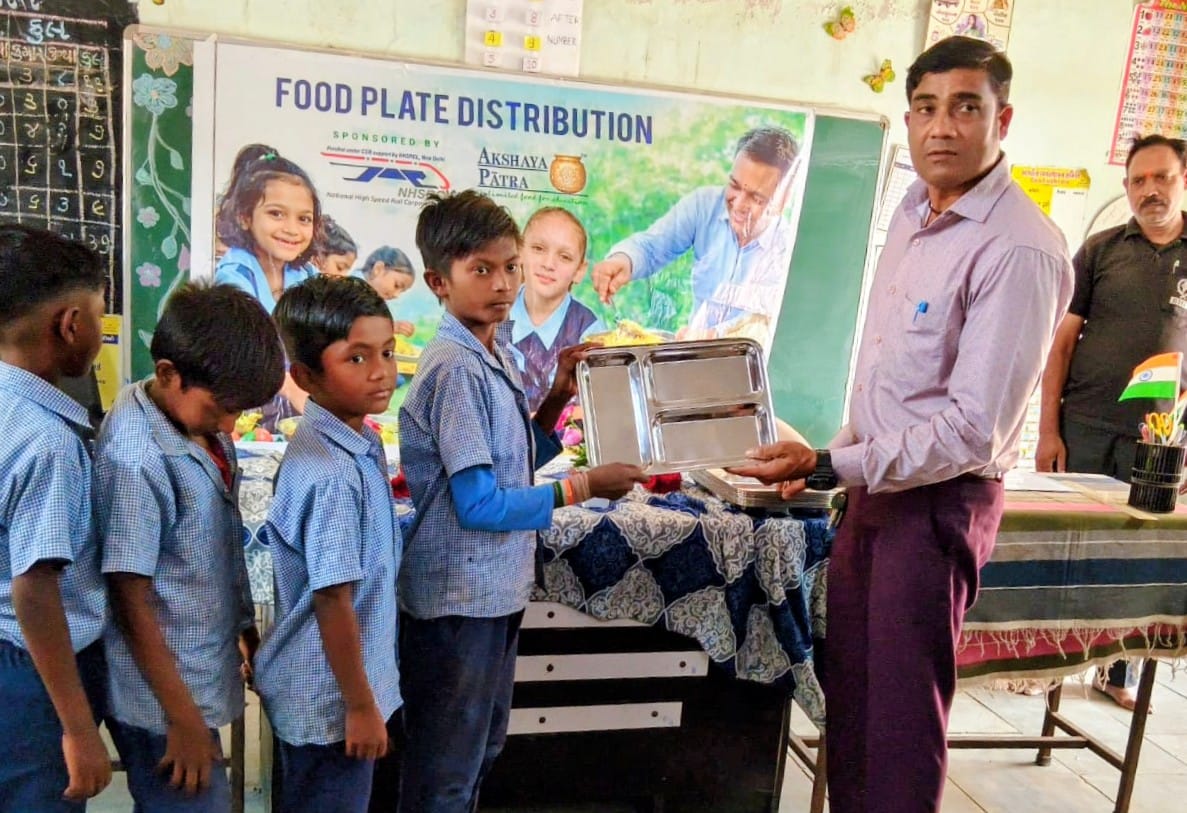 બુલેટ ટ્રેન પ્રોજેક્ટ તથા અક્ષયપાત્ર ફાઉન્ડેશન સુરત દ્રારા ઓલપાડની કીમામલી પ્રાથમિક શાળામાં સ્ટીલ ડીશનું વિતરણ