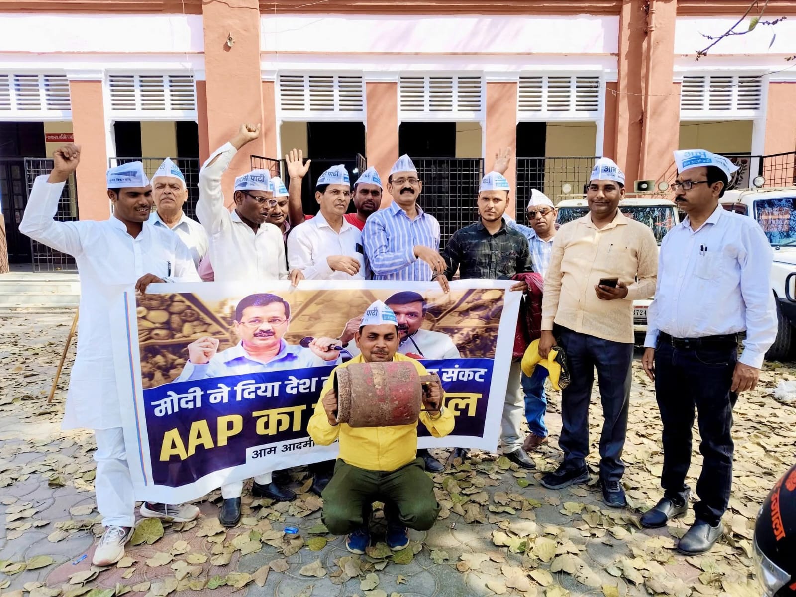 एलपीजी सिलेंडर के दाम बढ़ने पर AAP कार्यकर्ताओं का प्रदर्शन, राष्ट्रपति के नाम सौंपा ज्ञापन