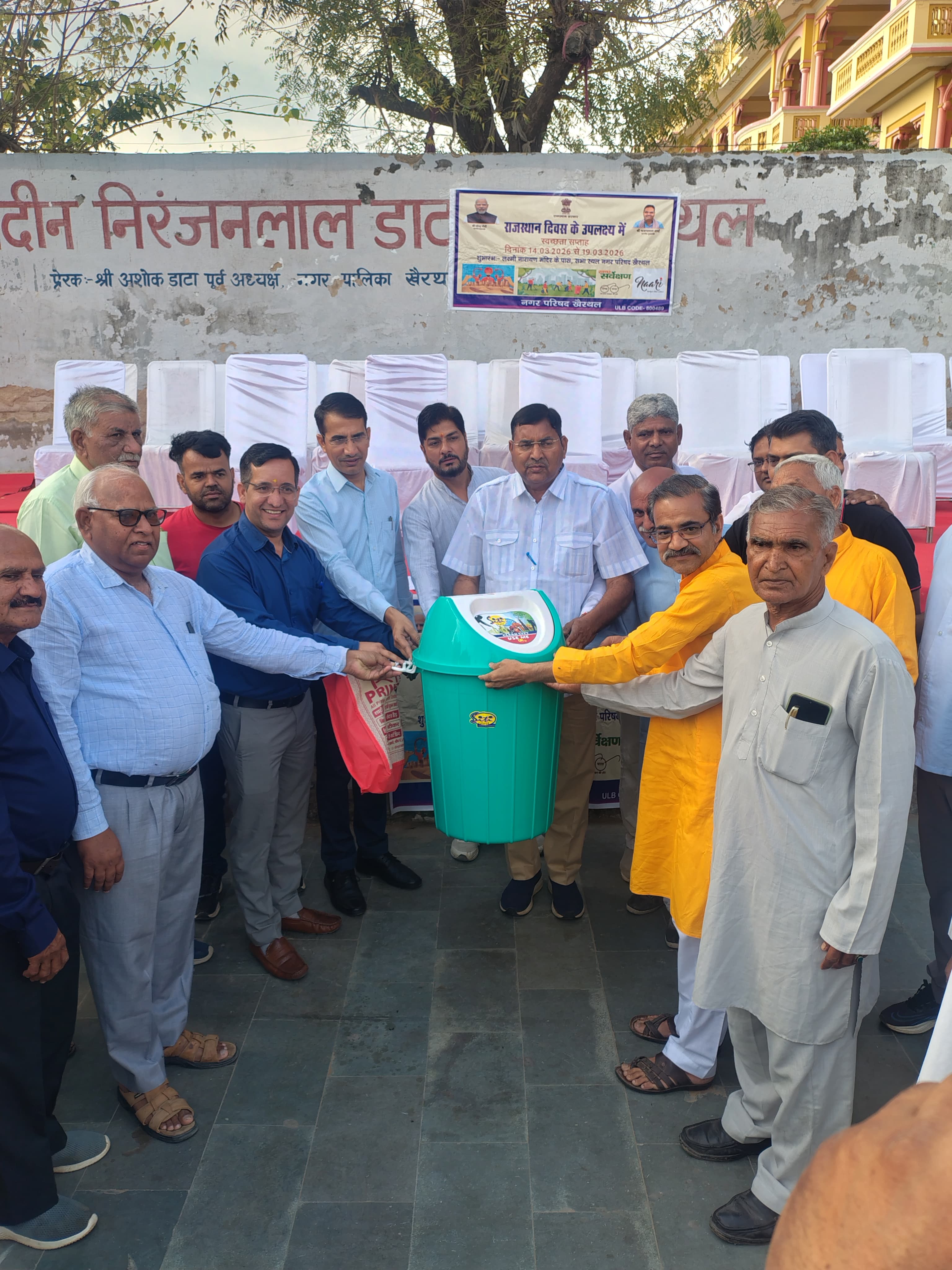 राजस्थान दिवस के आगामी आयोजनों की श्रृंखला में शनिवार को जिला स्तरीय स्वच्छता एवं संकल्प जागरूकता कार्यक्रम का भव्य आयोजन किया गया। लक्ष्मी नारायण मंदिर स्थित नगर परिषद् सभा स्थल में आयोजित इस कार्यक्रम में पूर्व विधायक किशनगढ़ बास रामहेत यादव एंव अतिरिक्त जिला कलेक्टर शिवपाल जाट सहित अन्य जनप्रतिनिधियों ने स्वच्छता शपथ एवं प्लास्टिक मुक्त भारत शपथ दिलाकर अभियान की शुरुआत की, इसके पश्चात लक्ष्मी नारायण मंदिर स्थित पार्क की साफ सफाई भी की गई।