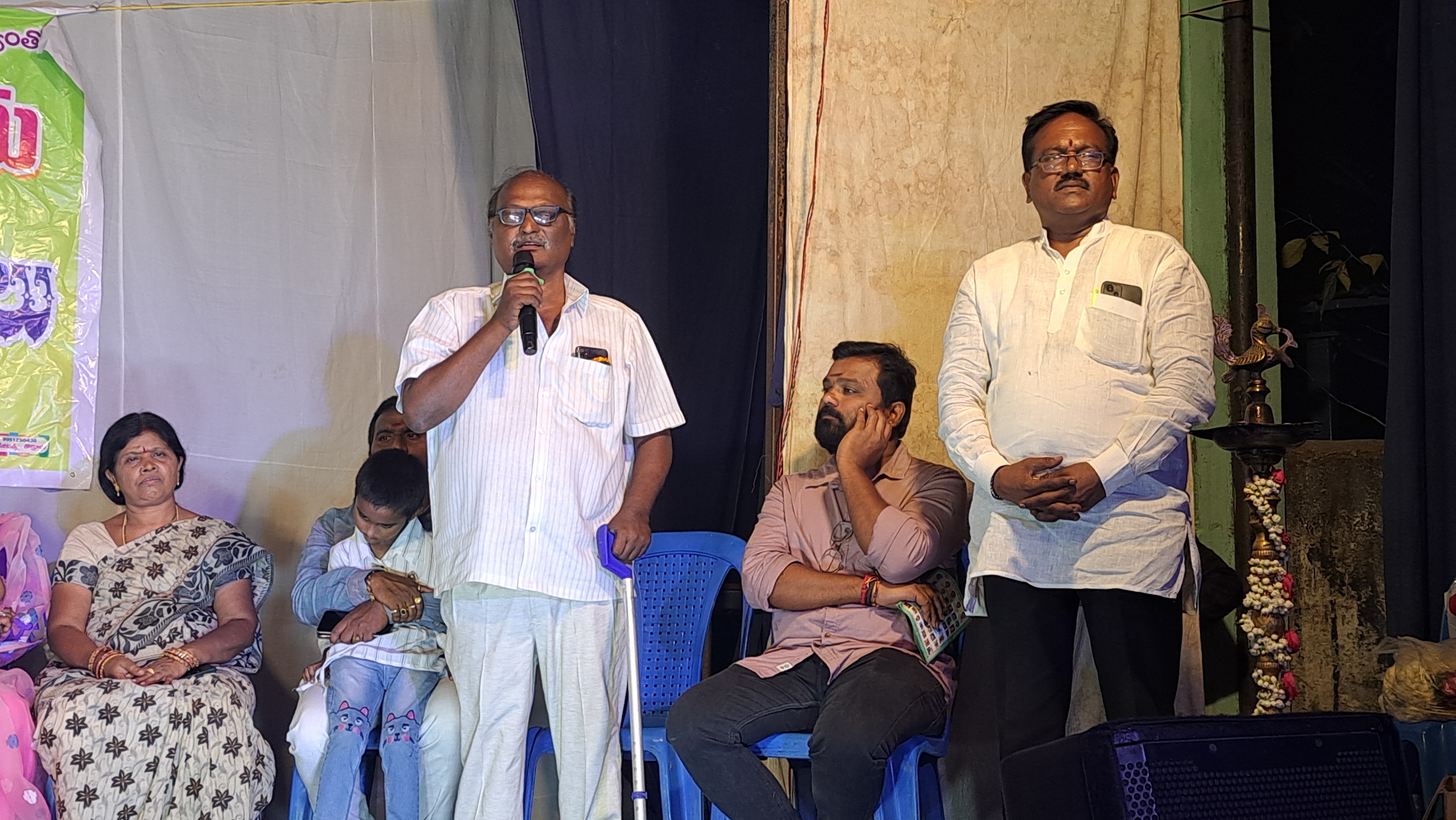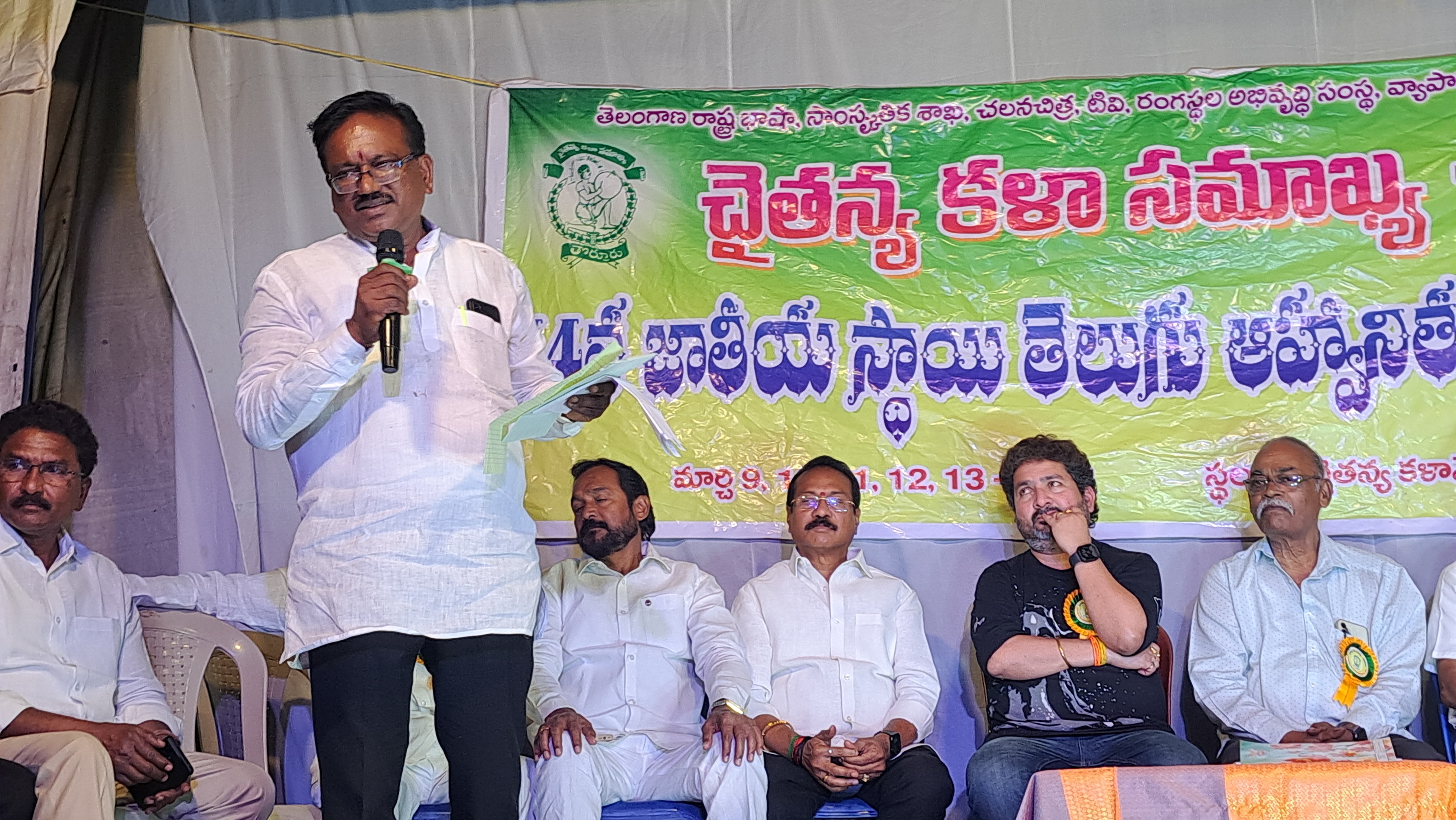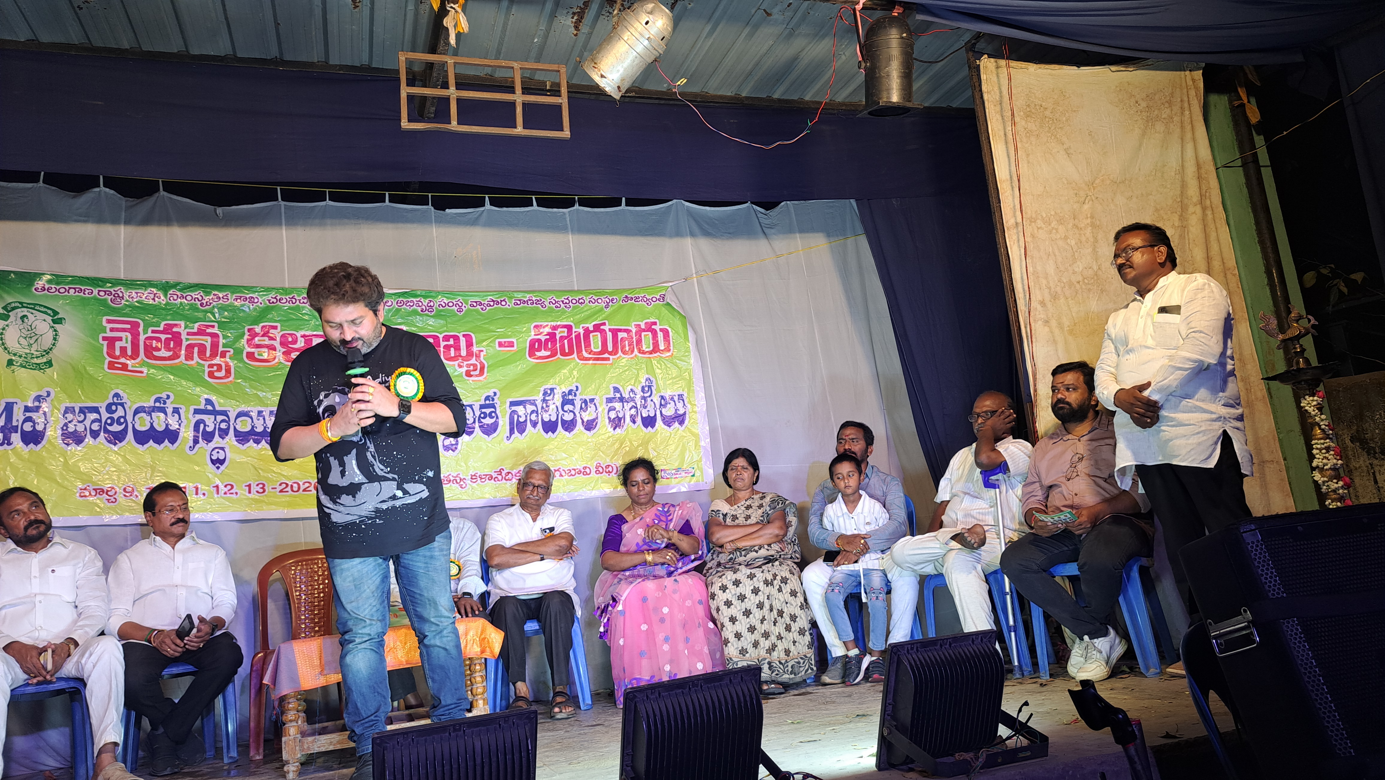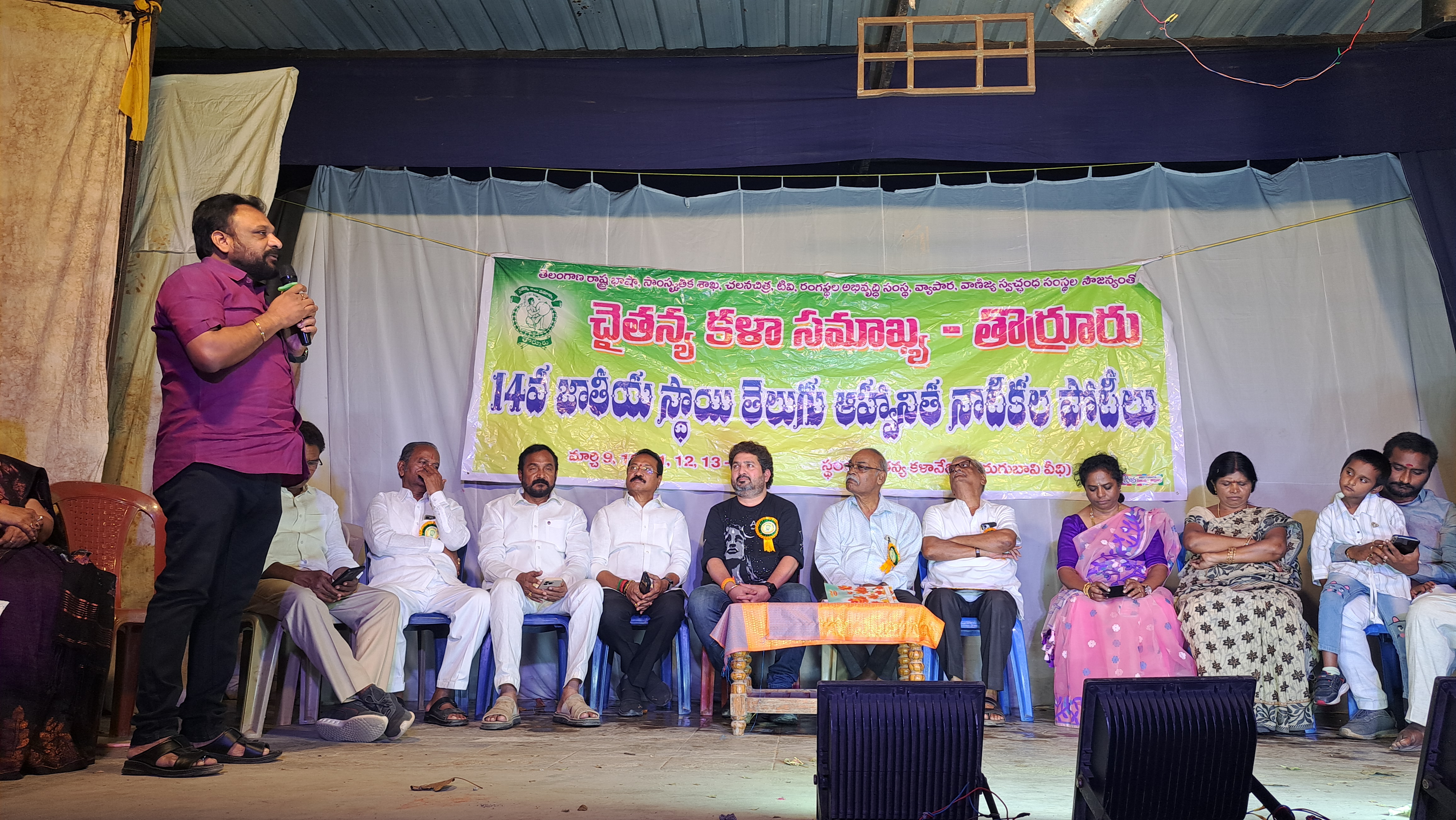 తొర్రూరు మార్చి 14; (AIMEMEDIA ) నాటక కళారంగాన్ని బ్రతికించడం అభినందనీయమని ప్రముఖ నేపథ్య గీత రచయిత కాసర్ల శ్యామ్ అన్నాడు శుక్రవారం రాత్రి తుర్రుపట్టణంలో చైతన్య కళాని సమాఖ్య ఆధ్వర్యంలో గత ఐదు రోజులుగా నిర్వహించిన నాటక పోటీల ముగింపు సమావేశానికి ముఖ్యఅతిథిగా పాల్గొన్నారు. ముందుగా మమ్మల్ని బతకనీయండి నాటికను ప్రదర్శించారు అనంతరం జరిగిన ముగింపు సమావేశం అధ్యక్షుడు మన్నూరు ఉమా వహించగా ప్రధాన కార్యదర్శి పినాక పాణి మన్నూరు ఉమా లు మాట్లాడుతూ