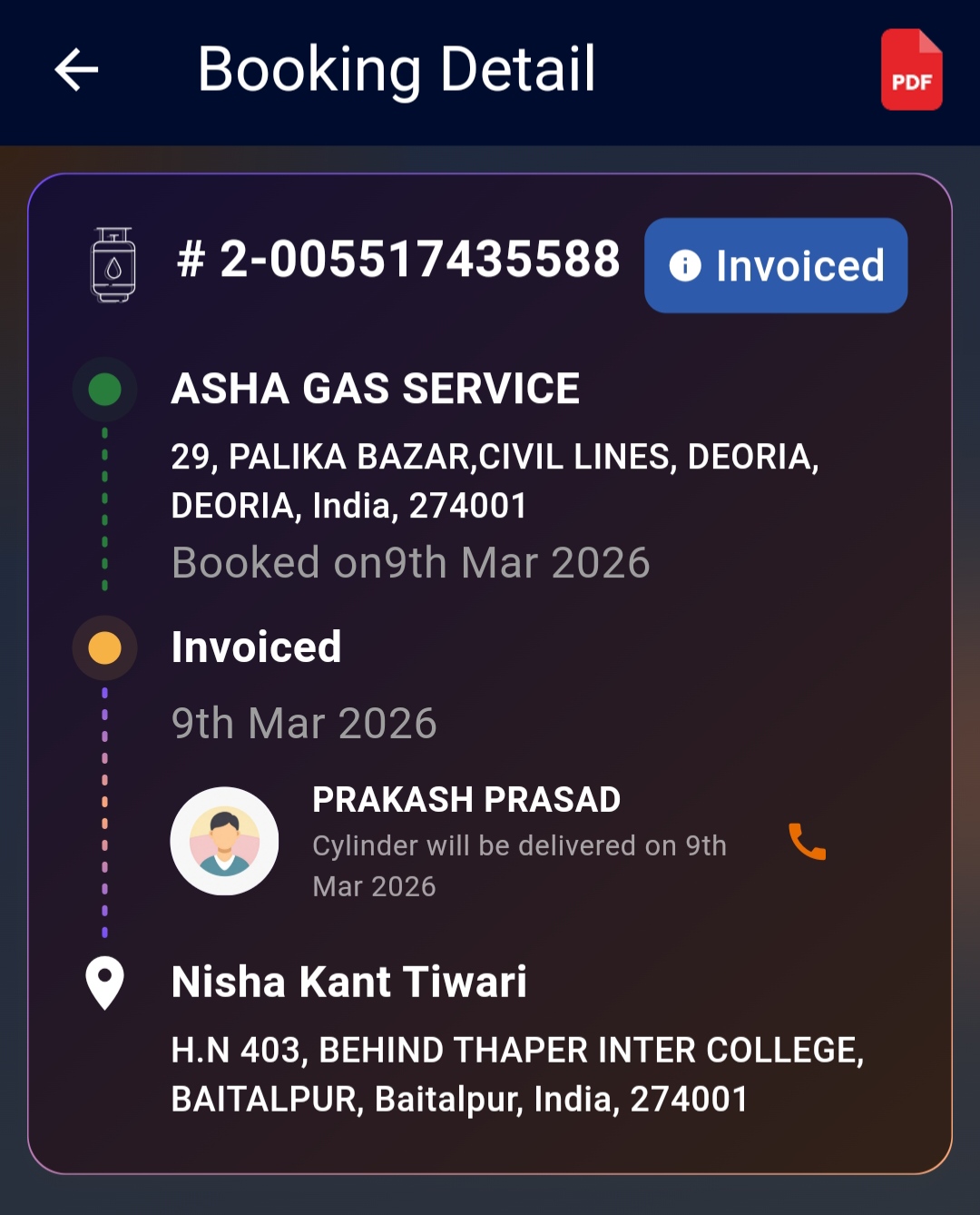 देवरिया। देवरिया स्थित आशा गैस सर्विस द्वारा गैस सिलेंडर की होम डिलीवरी हेतु बुकिंग करने के बाद इनवायस में प्रकाश प्रसाद नाम से डिलेवरी के लिए मोबाइल नंबर 8052453598 इंडेन एप पर दिखाई दे रहा है। इस मोबाइल नंबर पर फोन करने पर उपरोक्त ने बताया कि सात साल पूर्व ही उसने आशा गैस सर्विस छोड़ दिया है। बैतालपुर निवासी निशाकान्त तिवारी ने बताया कि आशा गैस सर्विस देवरिया में 9 मार्च को प्रीपेड गैस सिलेंडर के होम डिलीवरी हेतु बुकिंग किया हूं परन्तु अब तक गैस नहीं मिला है एवं गलत मोबाइल नंबर होने से संपर्क भी नहीं हो पा रहा है। गैस डिलीवरी हेतु जनपद देवरिया के हेल्प लाइन नंबर 05568469715 पर फोन कर शिकायत दर्ज कराई गई है।