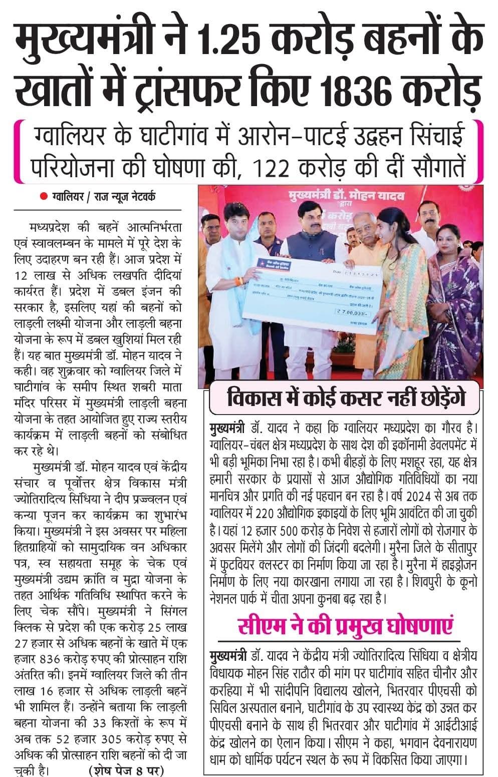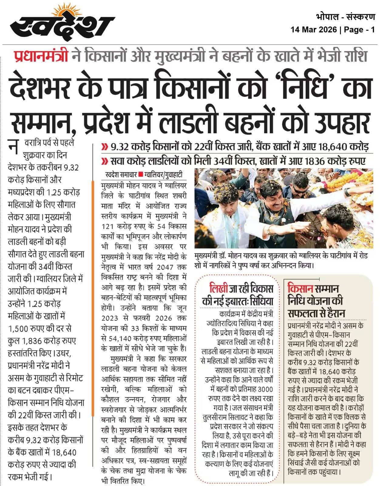 देश भर के पात्र किसानों को निधि का सम्मान प्रदेश में लाड़ली बहनों को उपहार