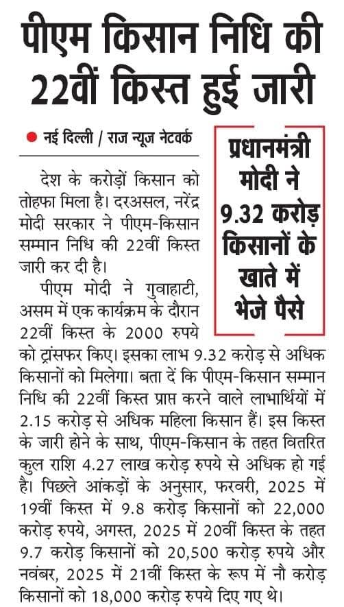 देशभर के पात्र किसानों को 'निधि' का सम्मान